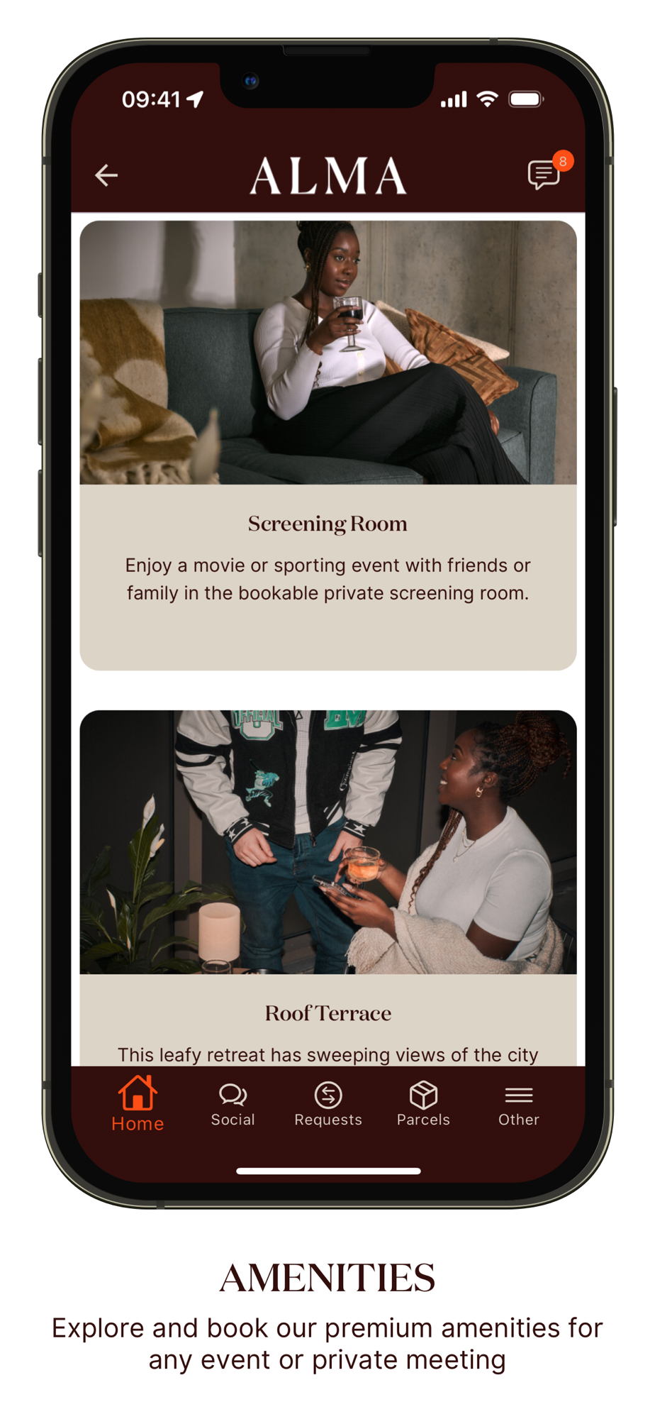 This app is exclusively for Alma residents. On move-in day, you will receive your unique invitation, which unlocks these features and more.