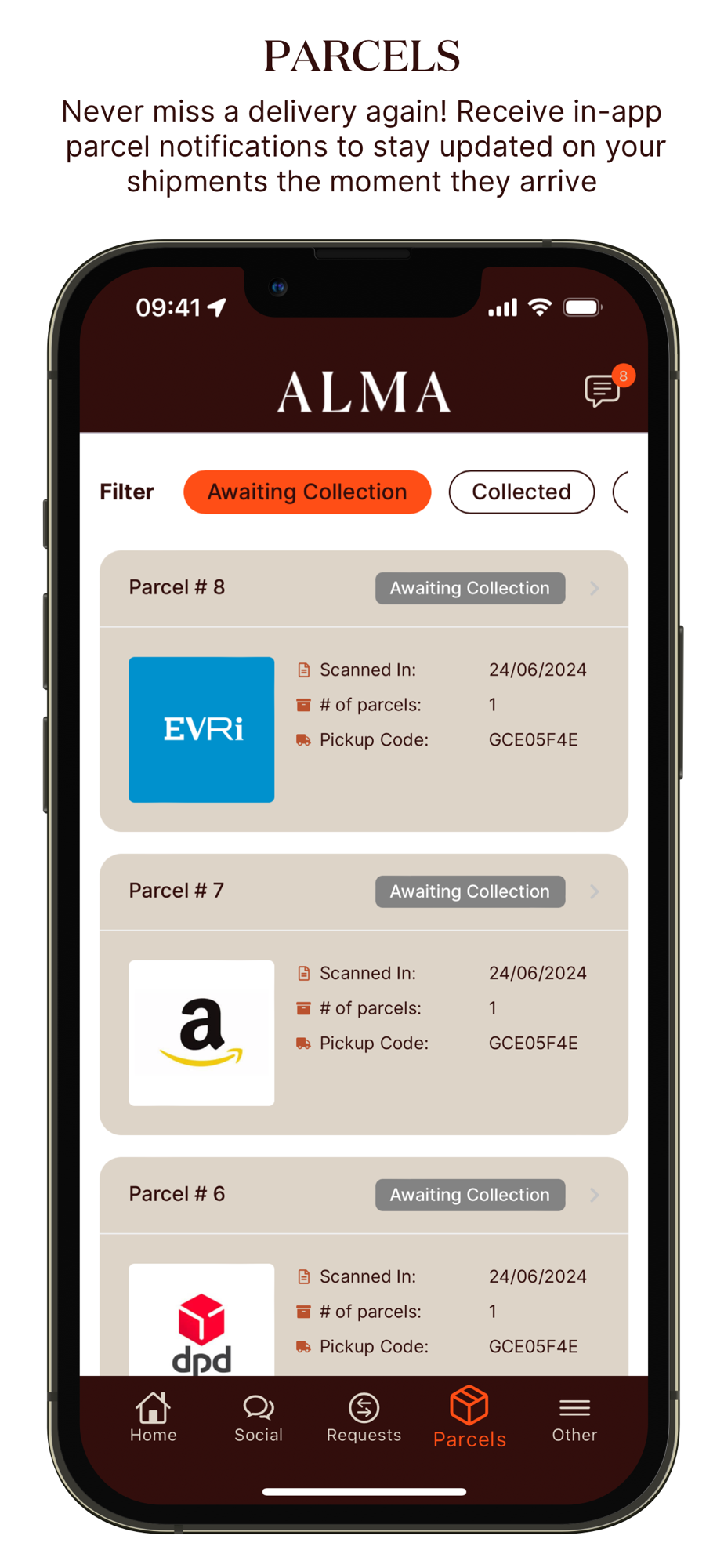 We'll manage your packages and deliveries and notify you through the app as soon as they arrive.