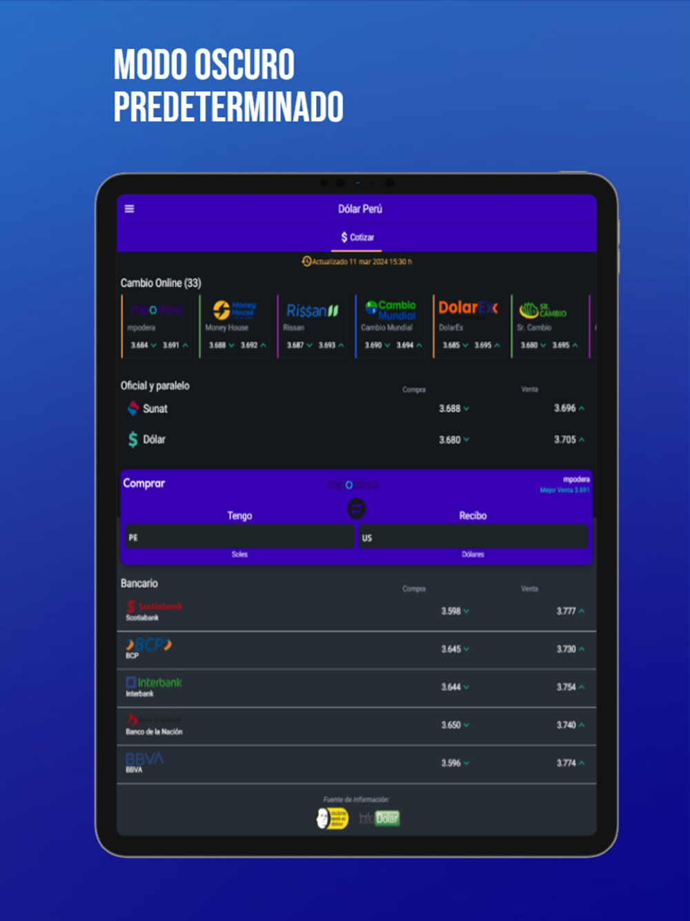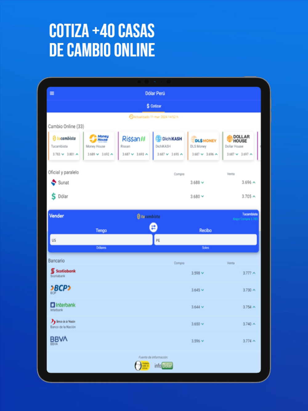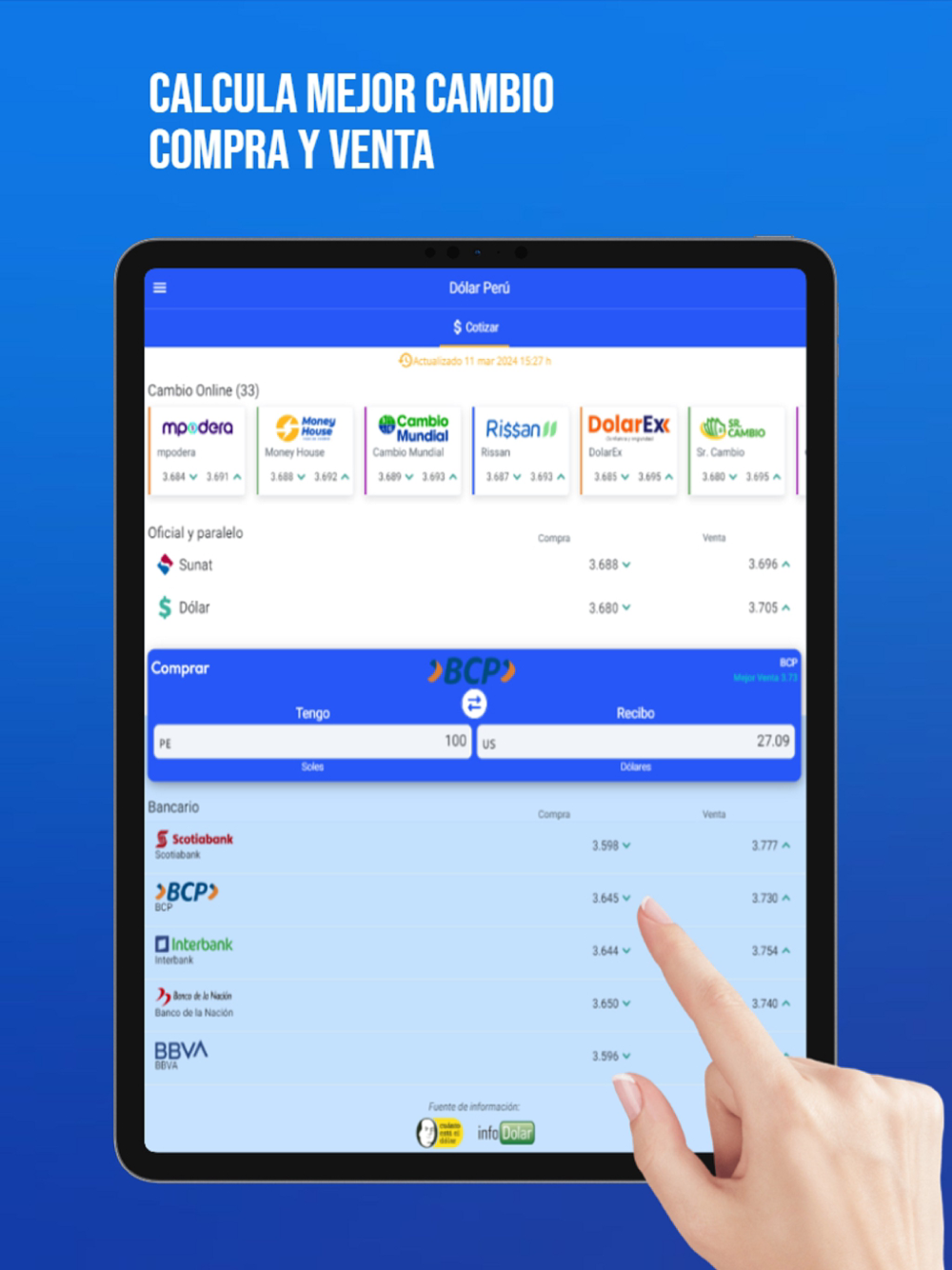 El precio, cotización, tipo de cambio del dolar en Perú en un solo clic. Compara las mejores casas de cambio.