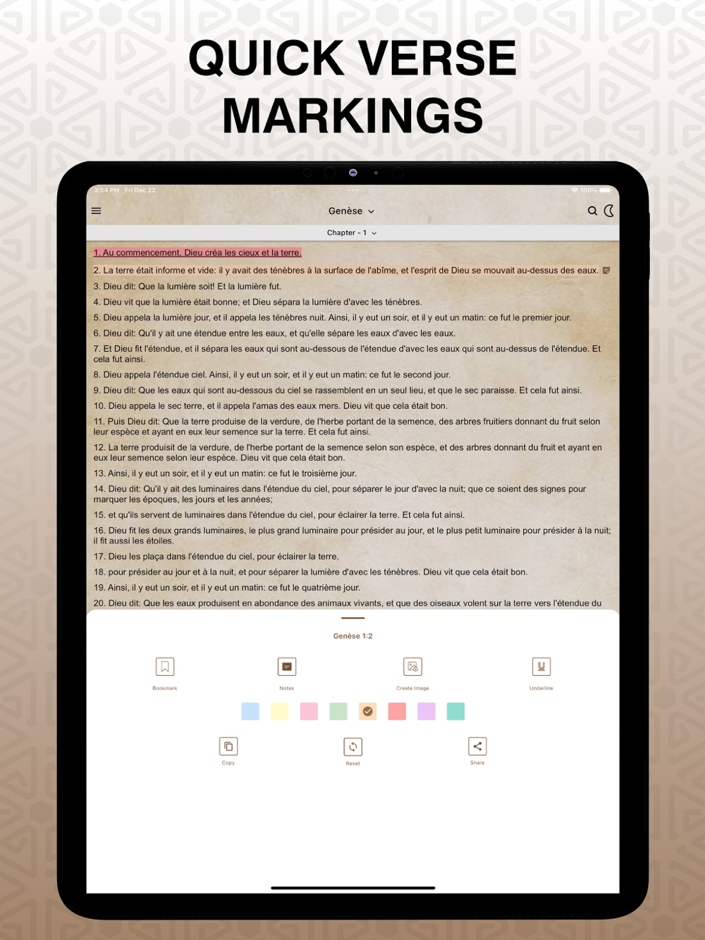 # Destacados y notas: personalice su estudio bíblico agregando resaltados, marcadores y notas para capturar sus pensamientos.