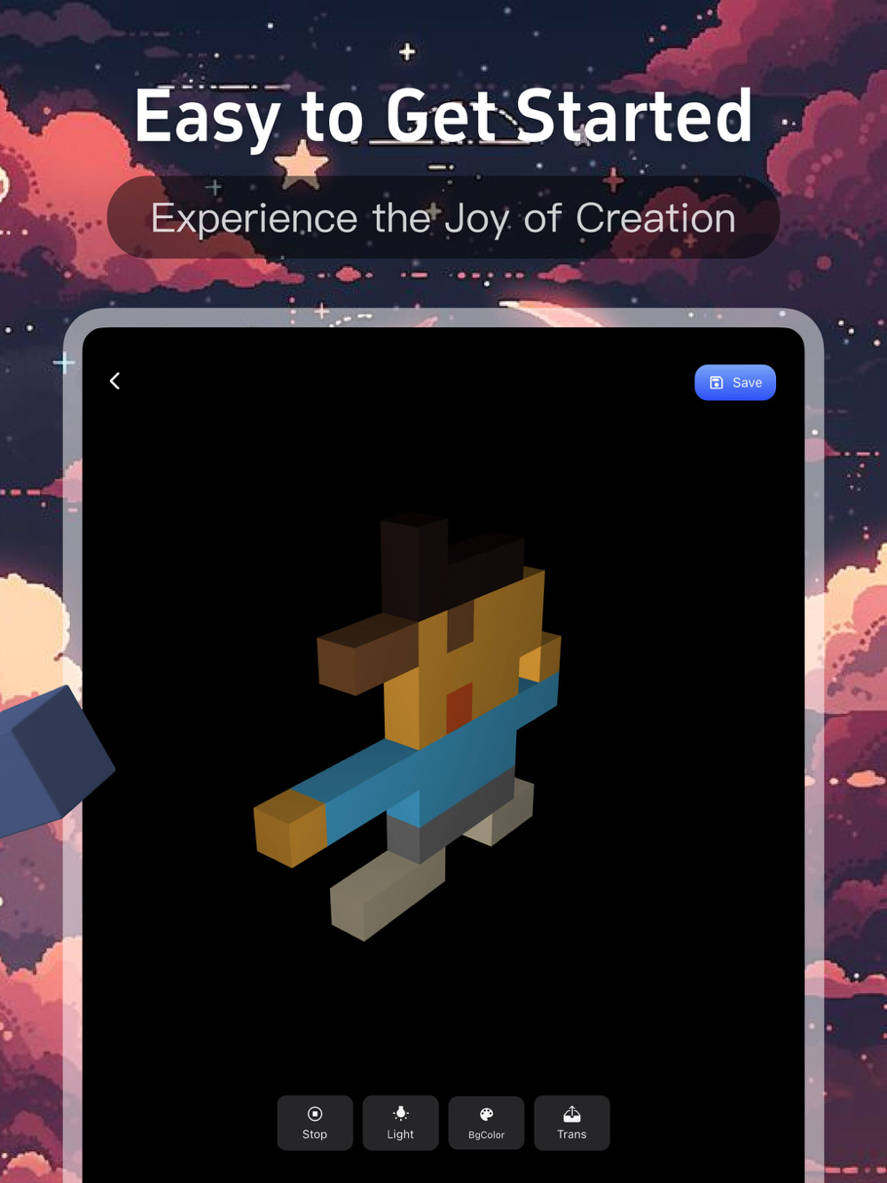 With Pixel3D App, you don't have to worry about a complicated operation process. Its interface design is concise and intuitive, making it easy for you to get started. Whether you are a beginner who is just starting out with painting or an enthusiast with some painting experience, you can find your own fun in this app. Moreover, Pixel3D App is suitable for users of all ages, from children to the elderly, allowing everyone to unleash their imagination and create their own 3D works.