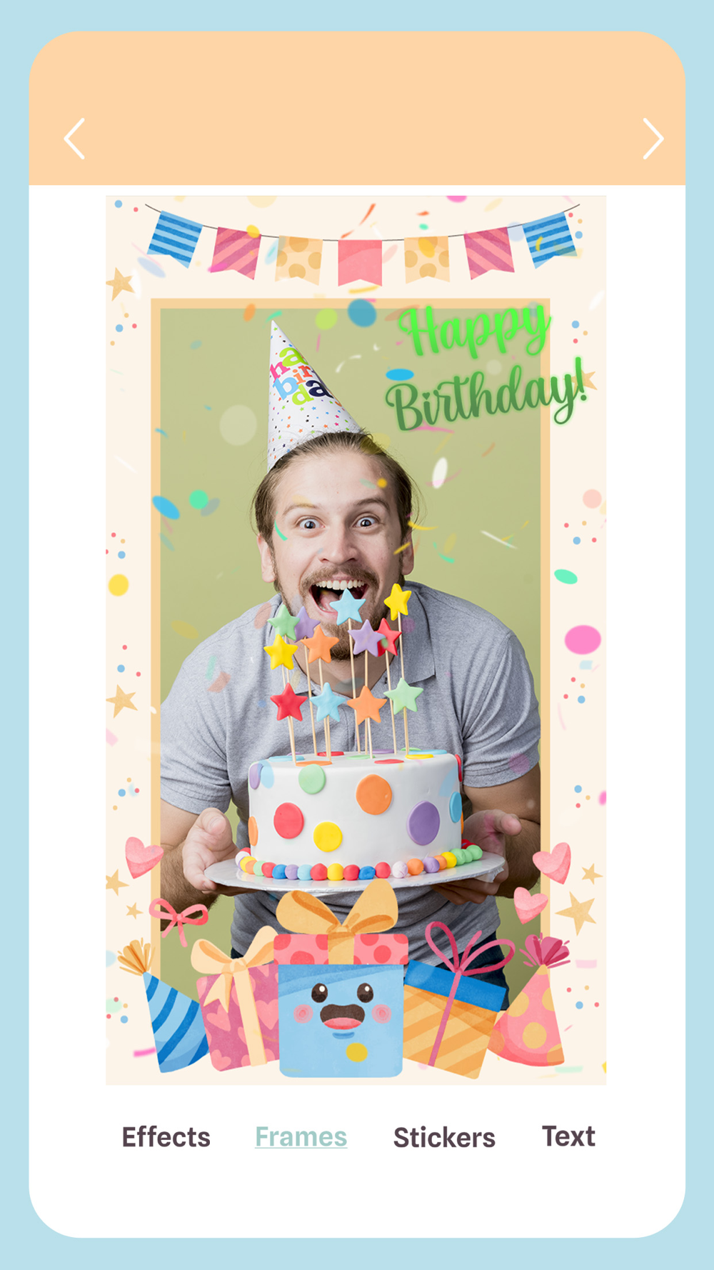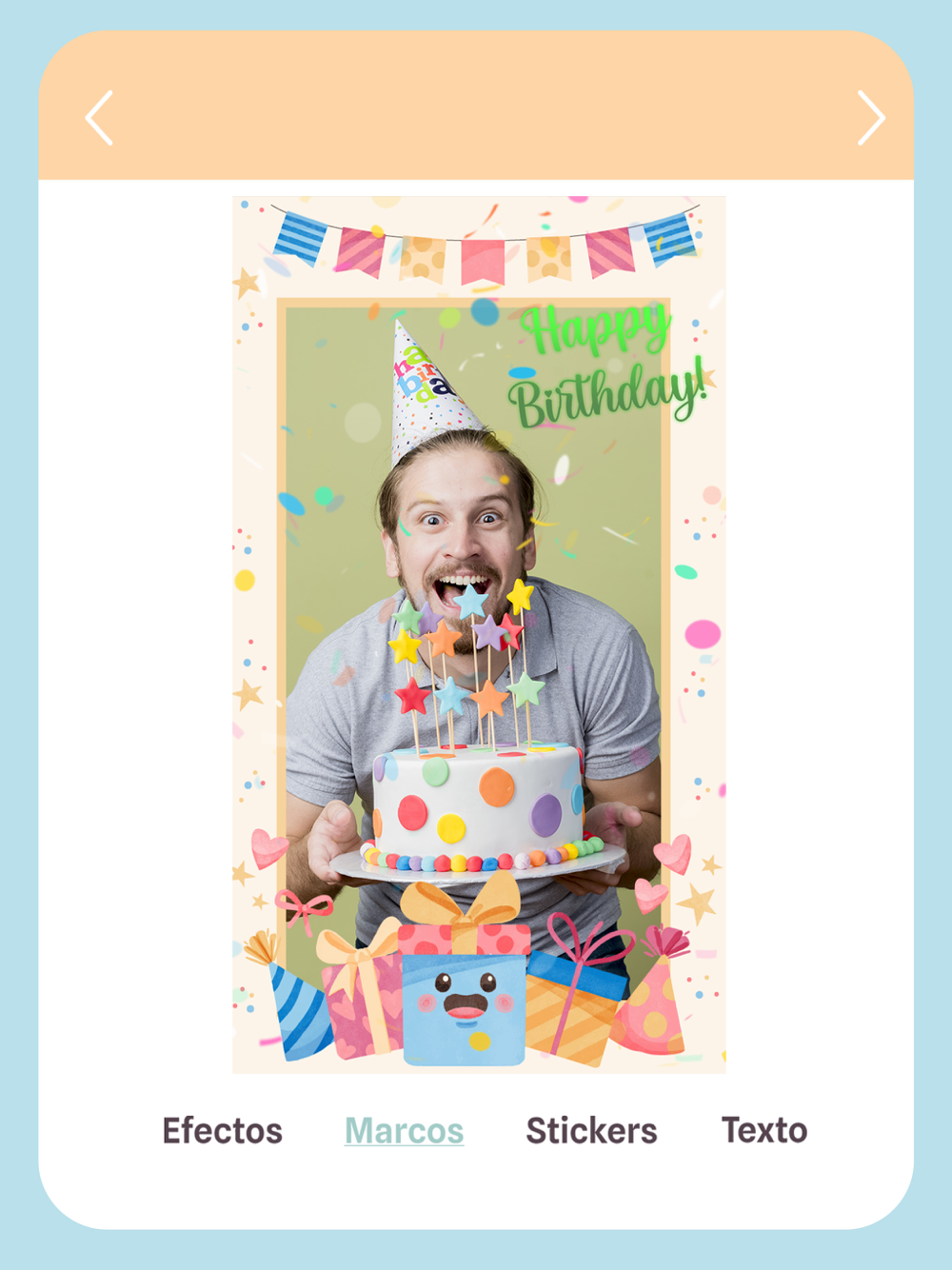 •定制的生日贺卡:组合照片,消息和贴纸以创建一种独一无二的卡,准备通过电子邮件或社交平台共享。