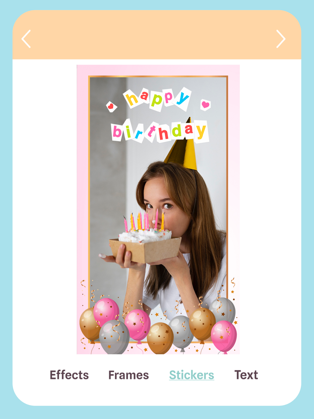 有趣的贴纸:用主题生日贴纸,表情符号,气球等装饰您的作品。