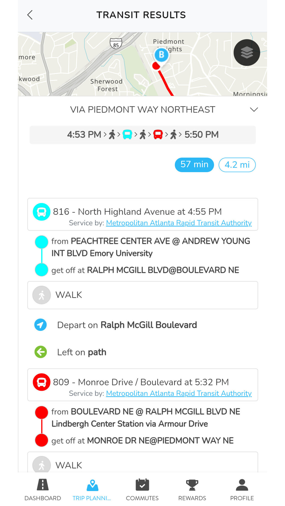 Simply record your carpool, vanpool, walk, bike, telecommute, or transit trips in your Georgia Commute Options account and earn points that can be redeemed for rewards.