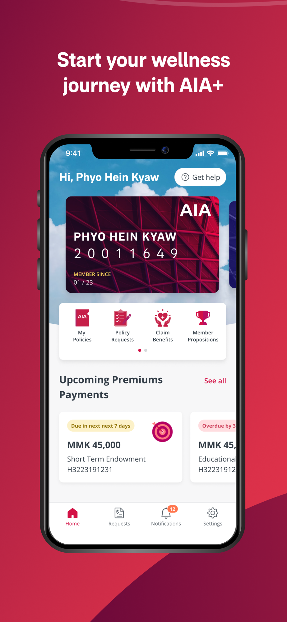 ・Access to AIA Myanmar Member card to help avail AIA's exclusive member propositions