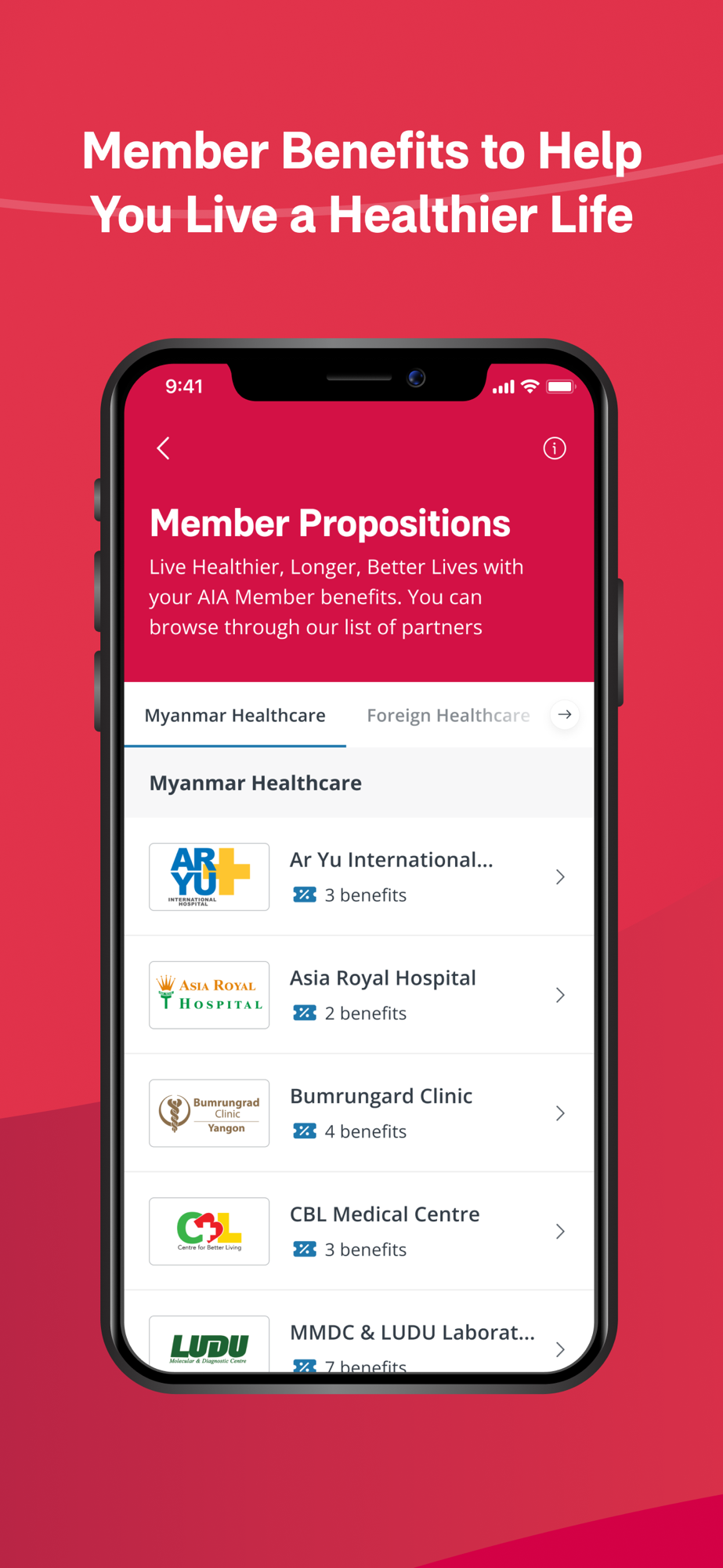 ・List of all Healthcare and Education proposition partners, along with AIA exclusive benefit details