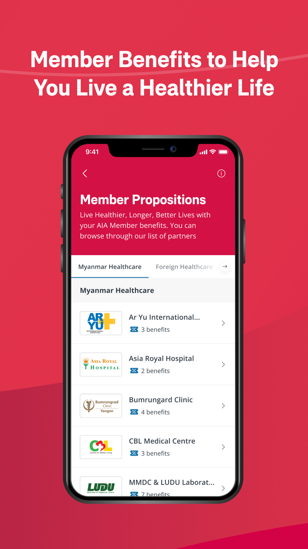 AIA+ app is a mobile application for AIA Myanmar members to access their member card and get access to AIA member-exclusive benefits from the extensive partner list to helps you on your journey of healthier, longer and better lives. In addition, AIA members can claim their insurance policy benefits and manage their policies with ease, with an end-to-end digital process, a three-step claim submission process, and ability to track status of benefit claims and request policy changes.