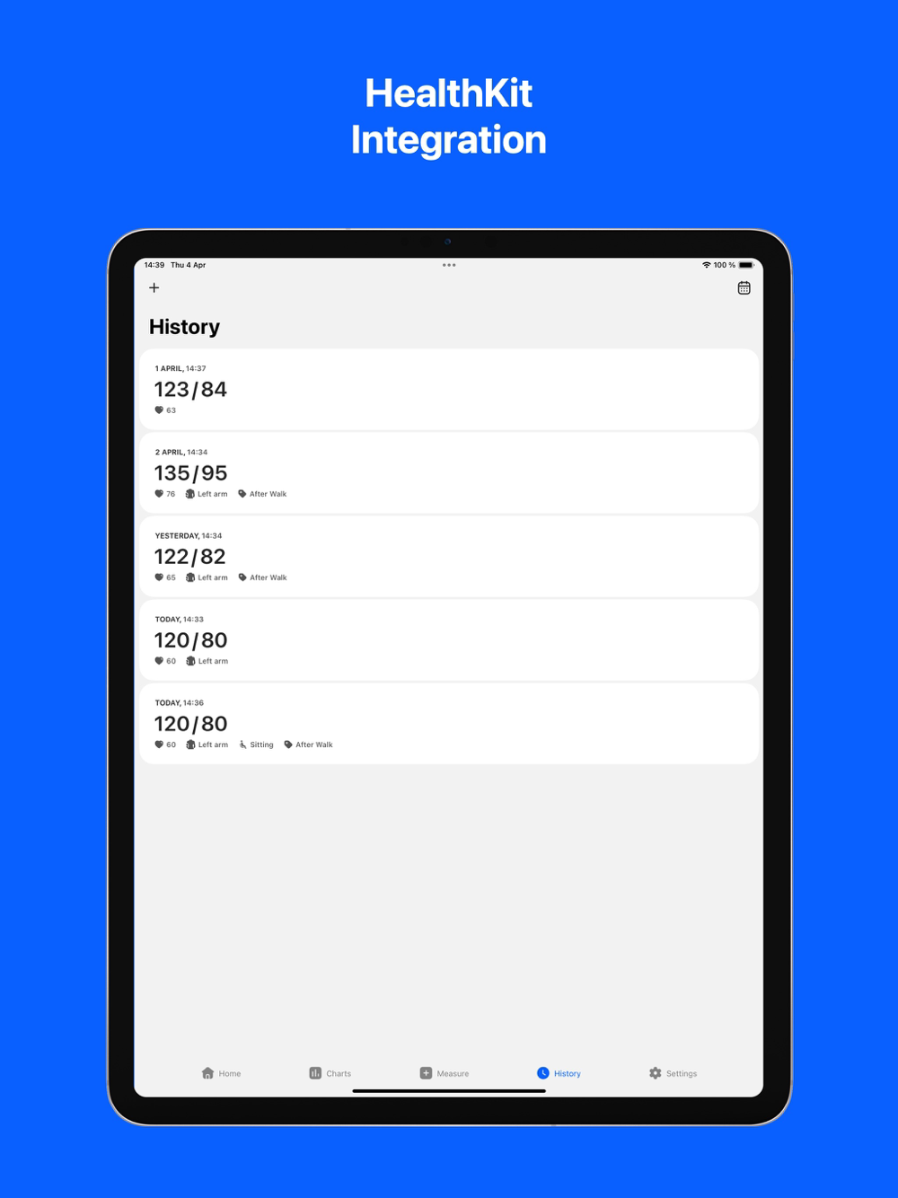 Seamlessly integrate with Apple HealthKit to sync your blood pressure data with other health and fitness apps, providing a holistic view of your overall well-being