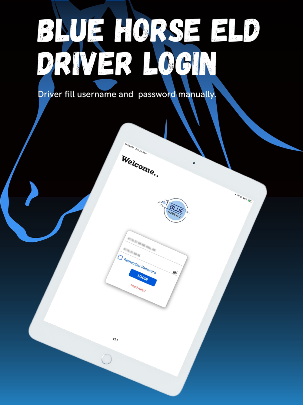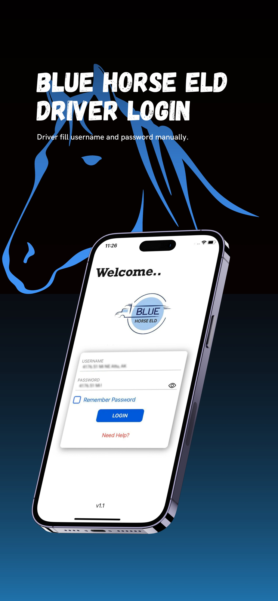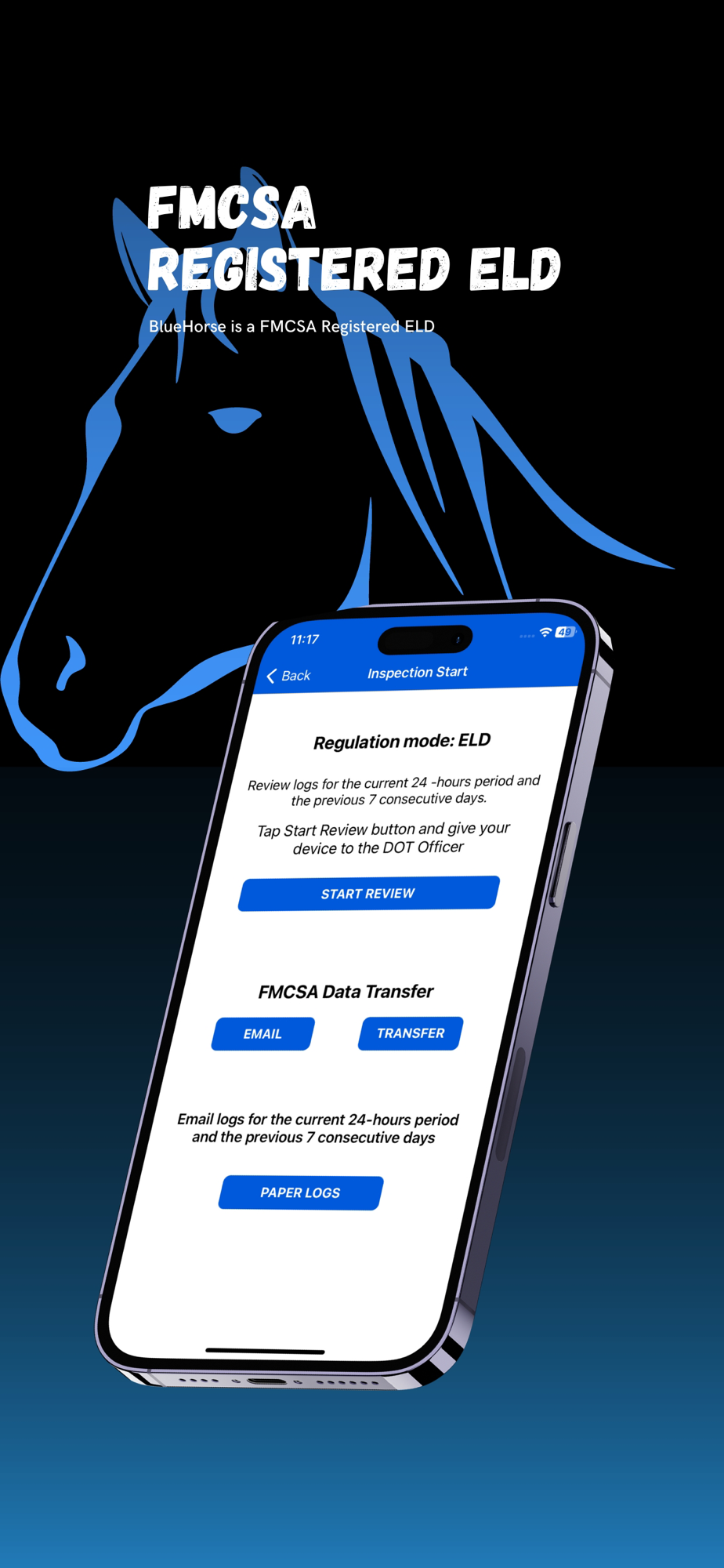 Bluehorse Eld is electronic logging device. Bluehorse Eld connect to a commercial motor vehicle engine to record driving hours.