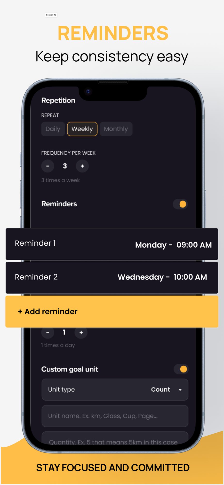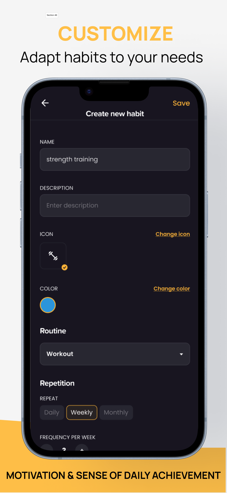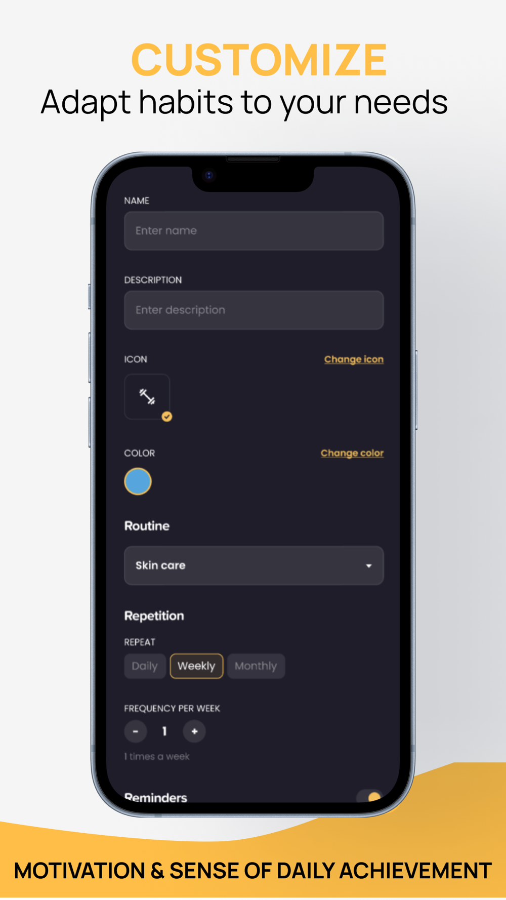 You can create habits and customize them according to your needs. Indicate how often they are repeated (never, daily, weekly or annually). But you can also add whether you should run it once or multiple times each time. Add a unique color, icon, and notes if necessary.