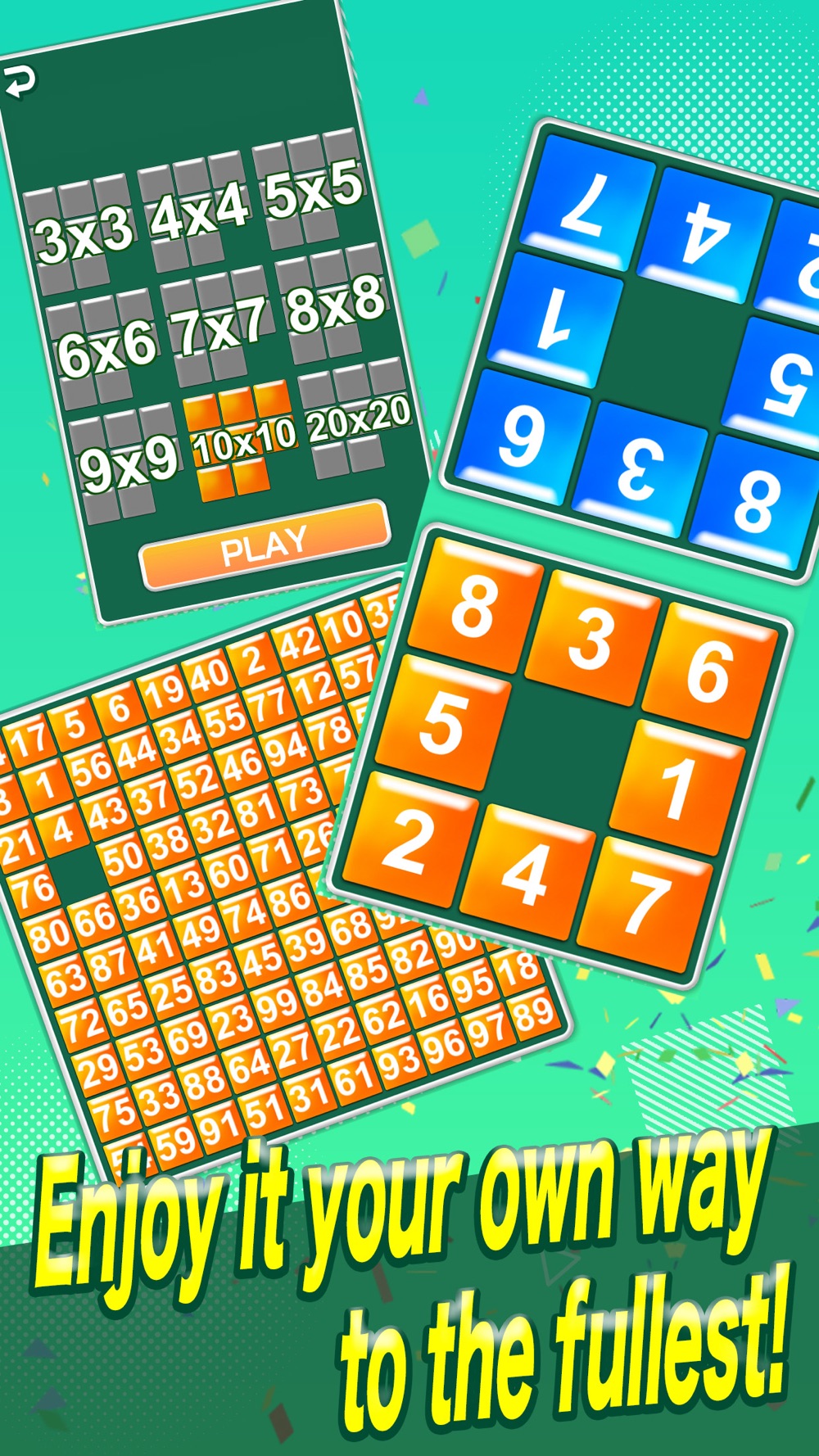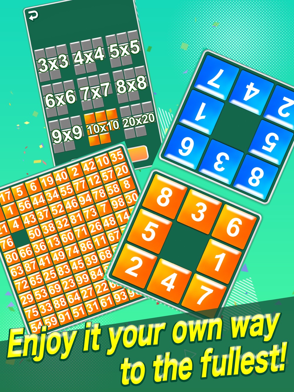1.Diverse Stages Stimulating the Brain: From easy 3x3 panels to ultra-difficult 20x20 panels, we offer a wide range of levels.