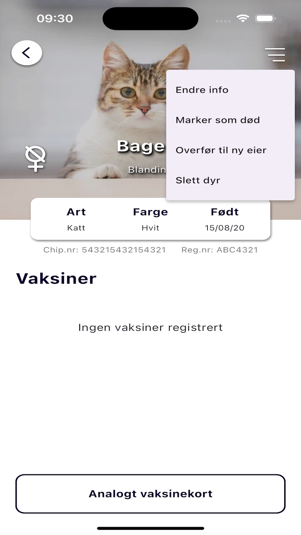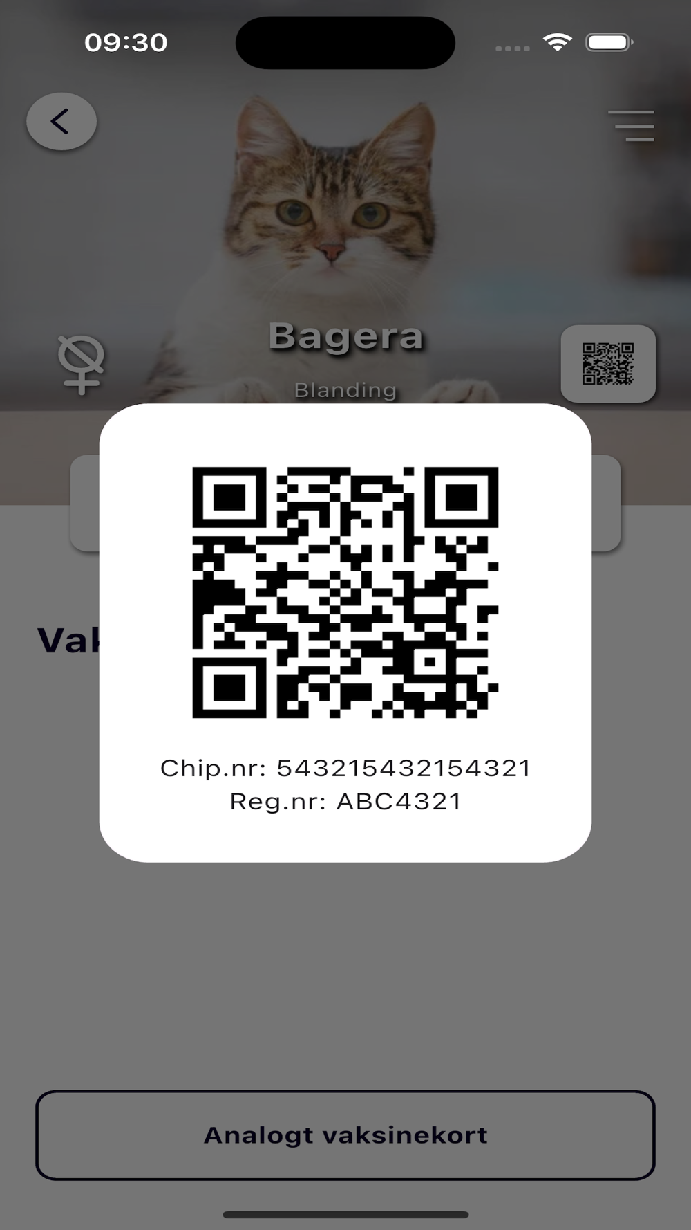 Veterinærer bruker også samme app for enkel registrering av vaksine. Se https://digimal.no/ for kontakt og mer informasjon.