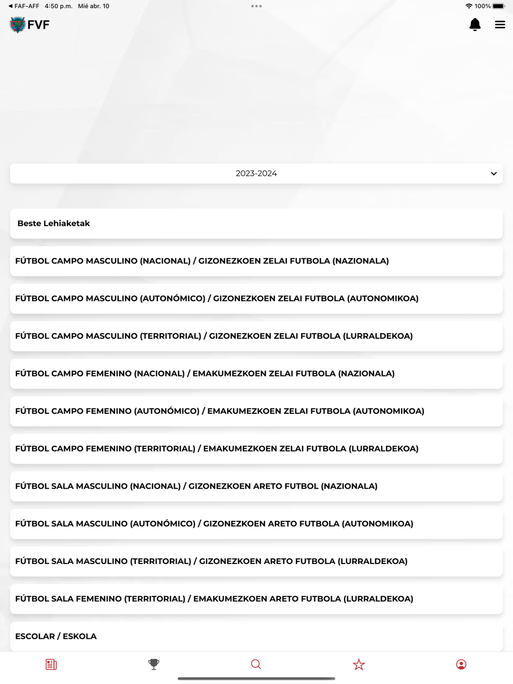 Aplicación oficial de la Federación Vizcaína de Fútbol.