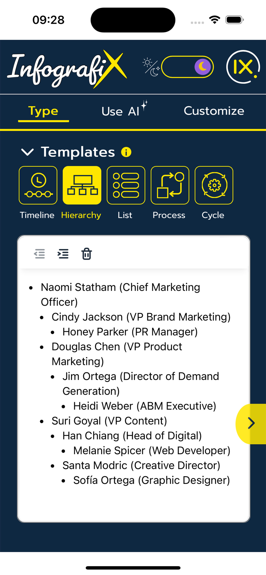 Infografix has generative AI built into it (aka Azure AI), so you can save some brain space and get content generated for you.