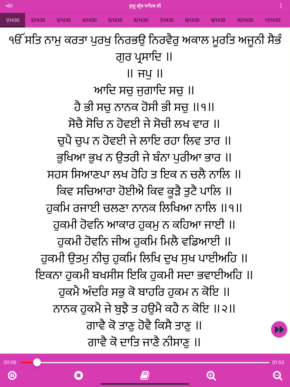 The text consists of 1430 angs (pages) and 6,000 shabads (line compositions), which are poetically rendered and set to a rhythmic ancient north Indian classical form of music. The bulk of the scripture is divided into thirty-one ragas, with each Granth raga subdivided according to length and author. The hymns in the scripture are arranged primarily by the ragas in which they are read. The Guru Granth Sahib is written in the Gurmukhi script, in various languages, including Lahnda (Western Punjabi), Braj Bhasha, Khariboli, Sanskrit, Sindhi, and Persian. Copies in these languages often have the generic title of Sant Bhasha.
