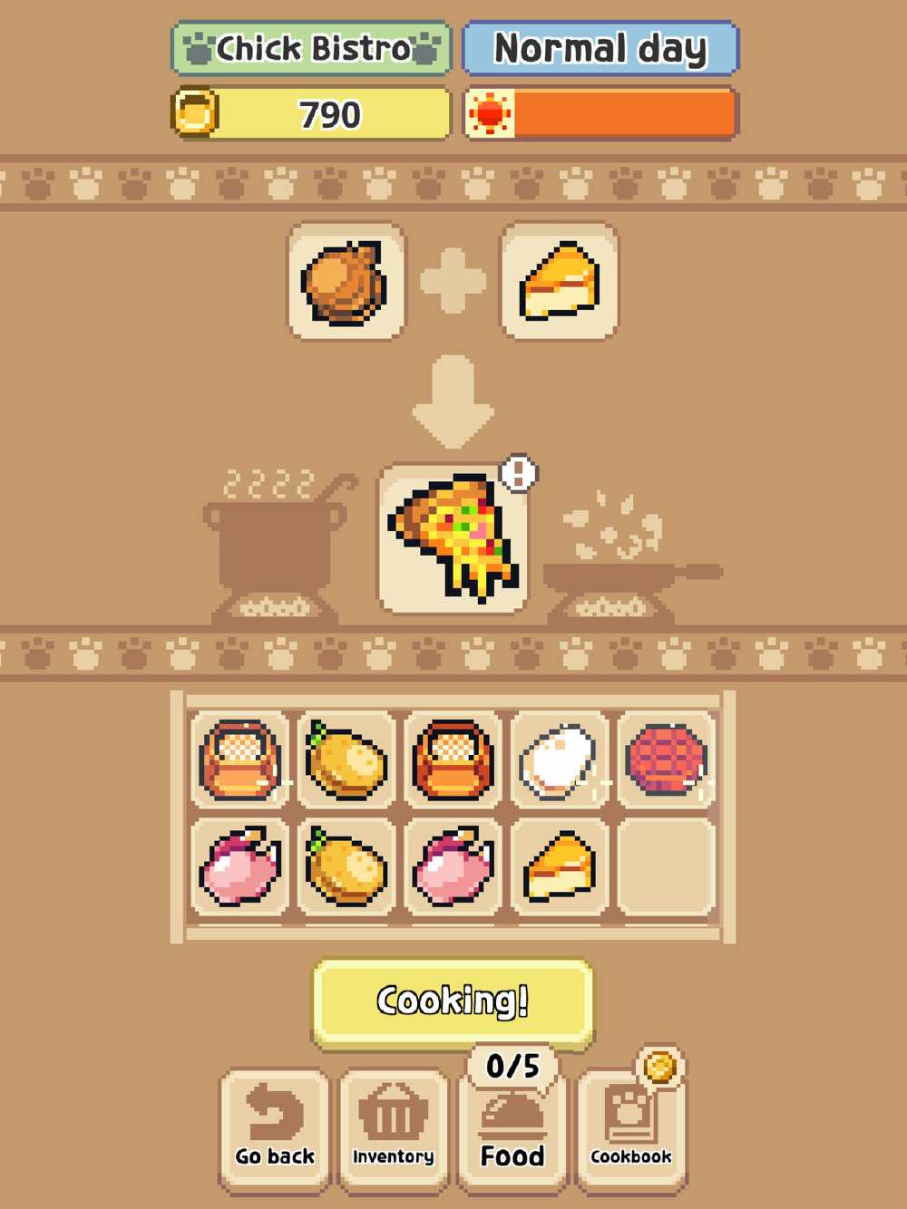 - Prepare the bistro opening by turning the purchased ingredients into "Dishes", meow.