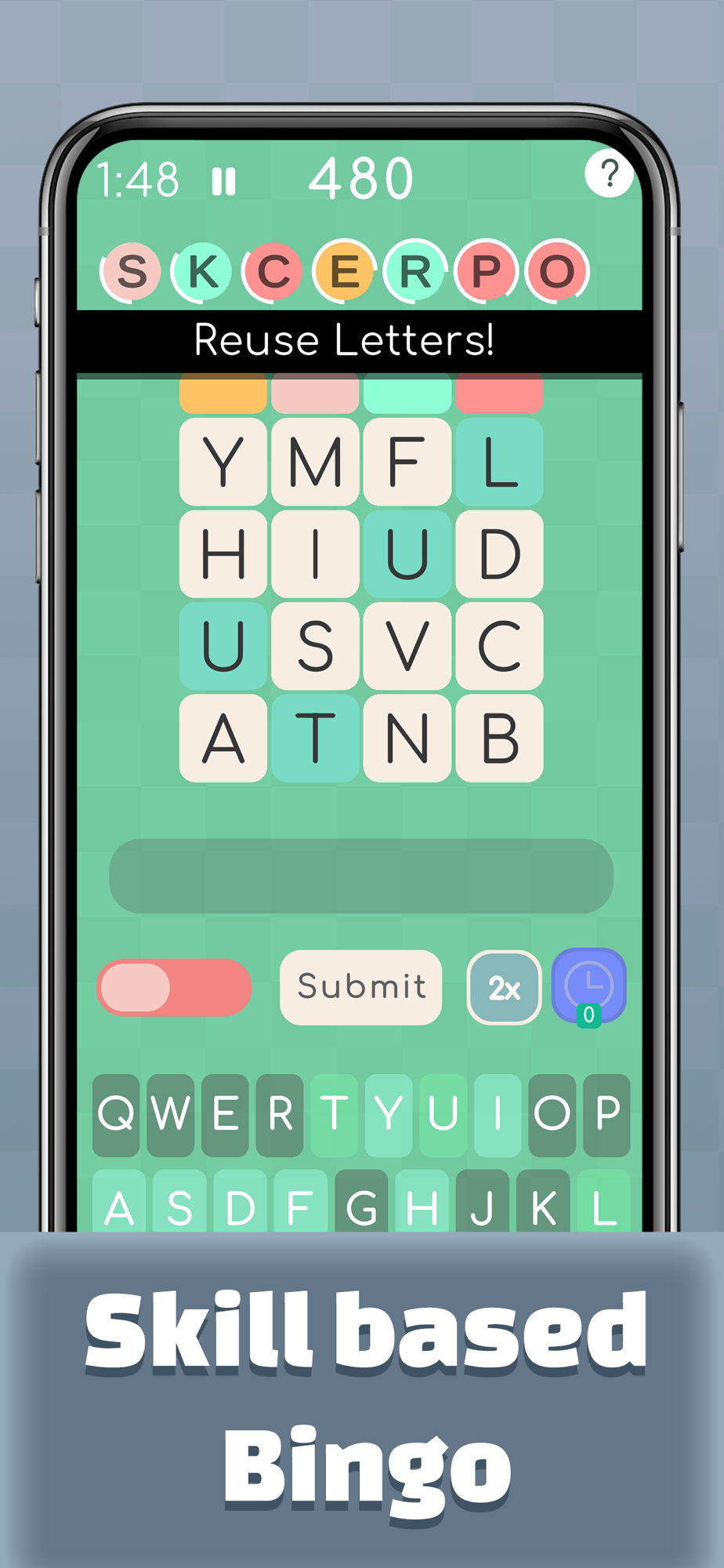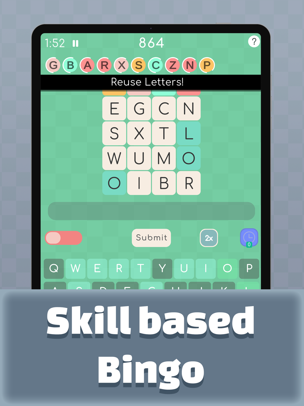 Powered by Skillz®, players compete on equal footing with the same letters and bingo cards. It’s not about luck; it’s about skill and speed in forming words to dominate the game!