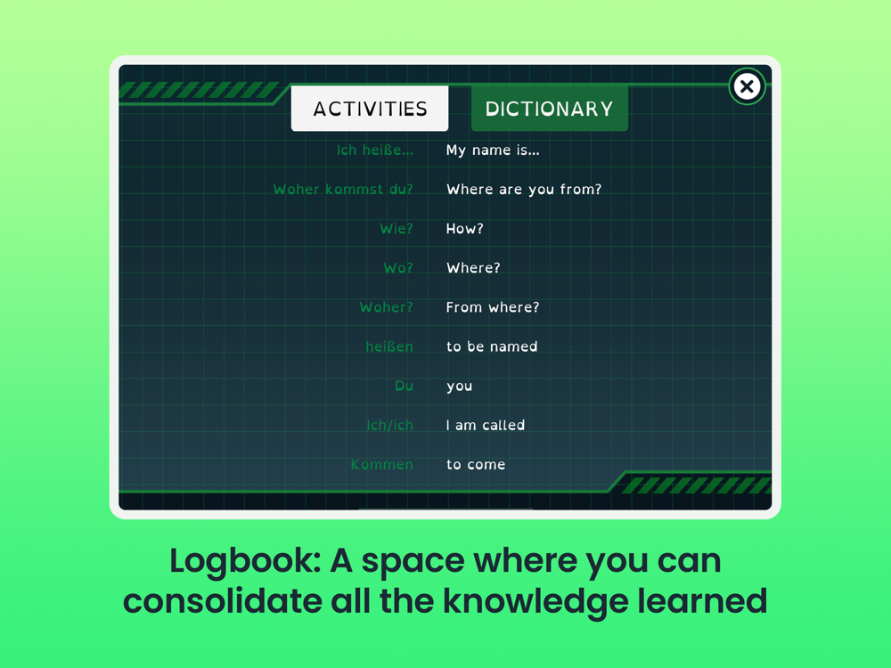 3. Assimilation of content is ensured through reading and writing in the Logbook. A real immersive way to learn German for 8 to 12 year old kids