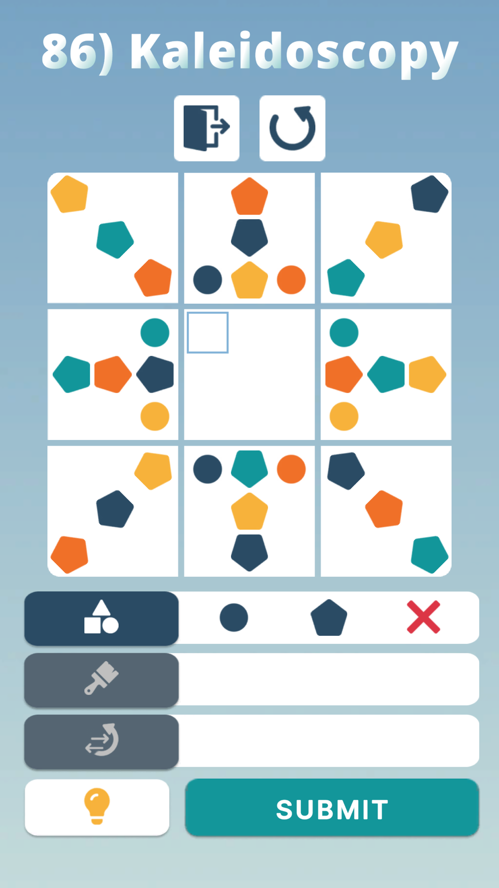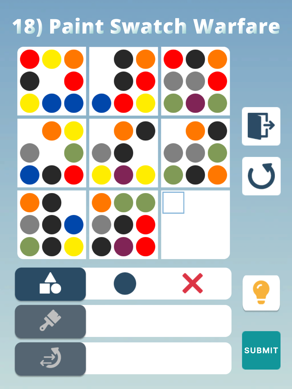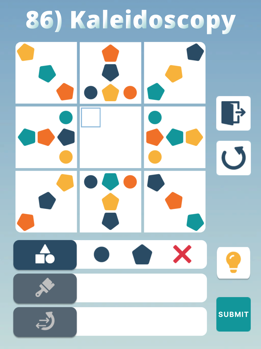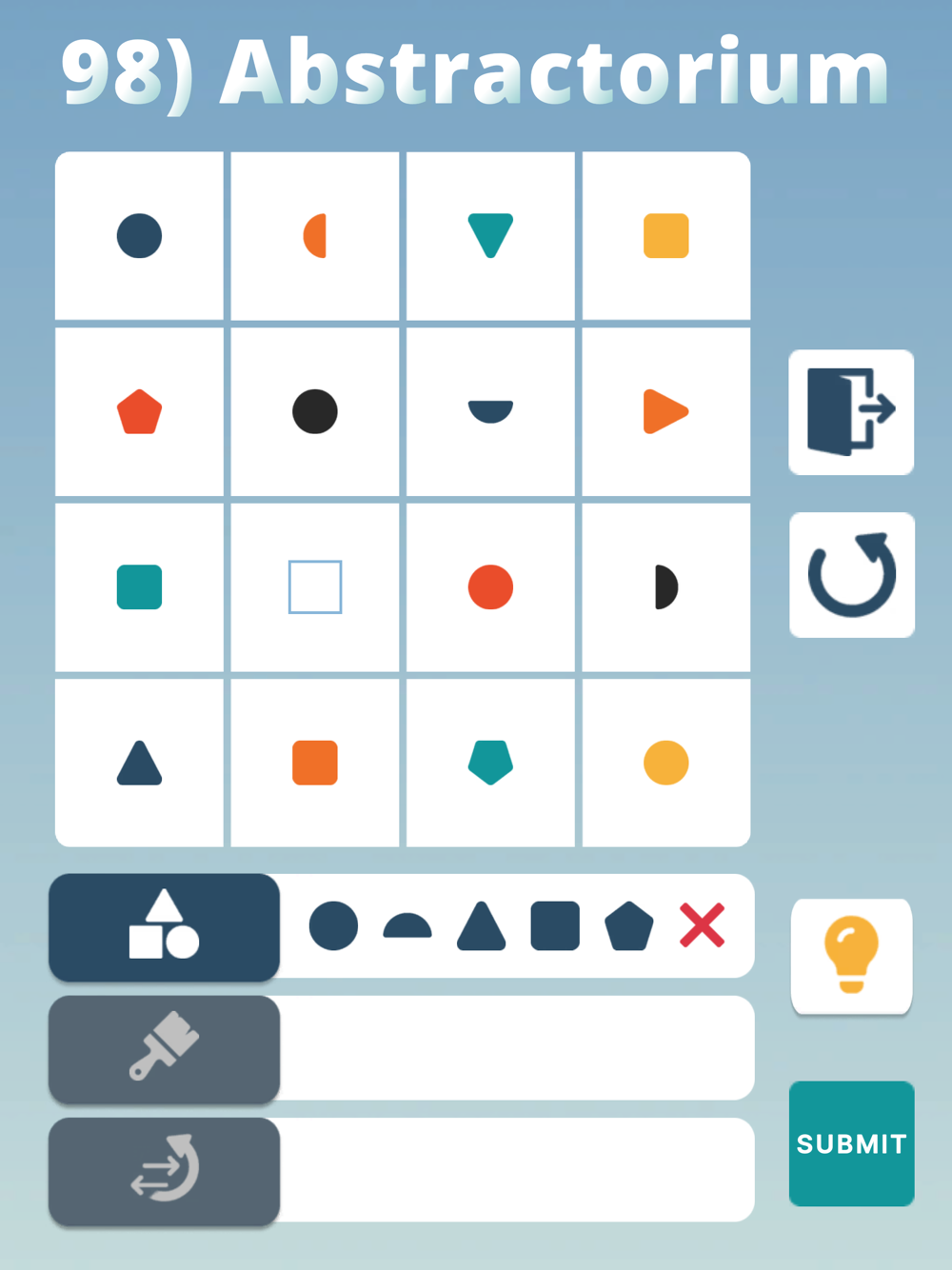 This logic puzzle game trains your brain while on a difficult journey through an abstract land of shapes. It is designed to challenge you through 100 levels, from simple to playfully difficult. Play at your own pace, casual or hyper-casual style.