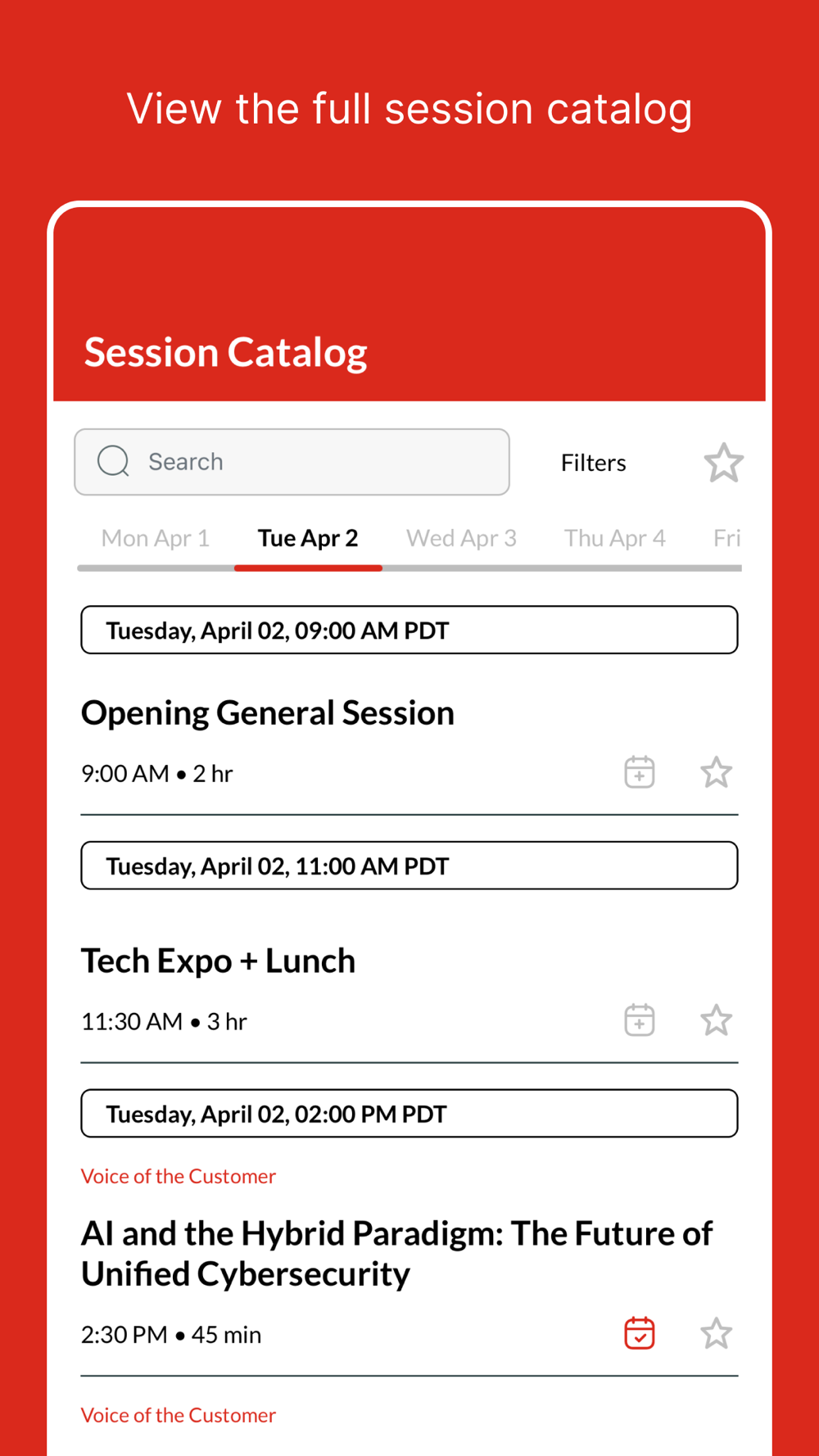 Get the most out of your event experience with the app when you have your personalized agenda at your fingertips. Additionally, the entire content library is included with rooms, dates, and times for your preferred sessions. You can also check out sponsors, view important event information, and even connect with other attendees.