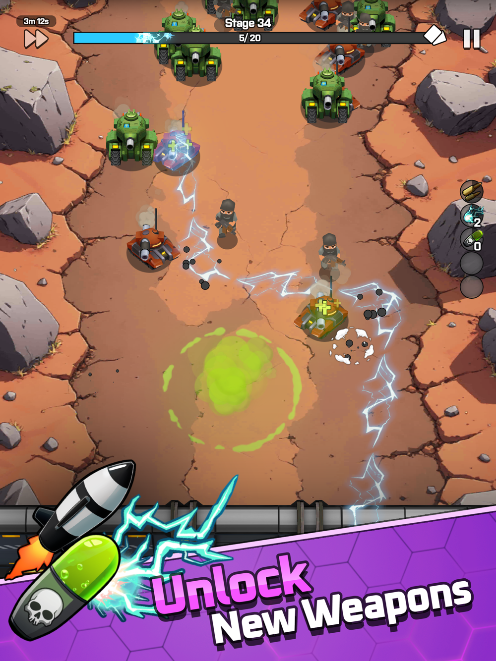 Unlock and upgrade machine guns, rocket launchers, and other deadly weapons. Each brings unique abilities and tactical advantages to your defense.