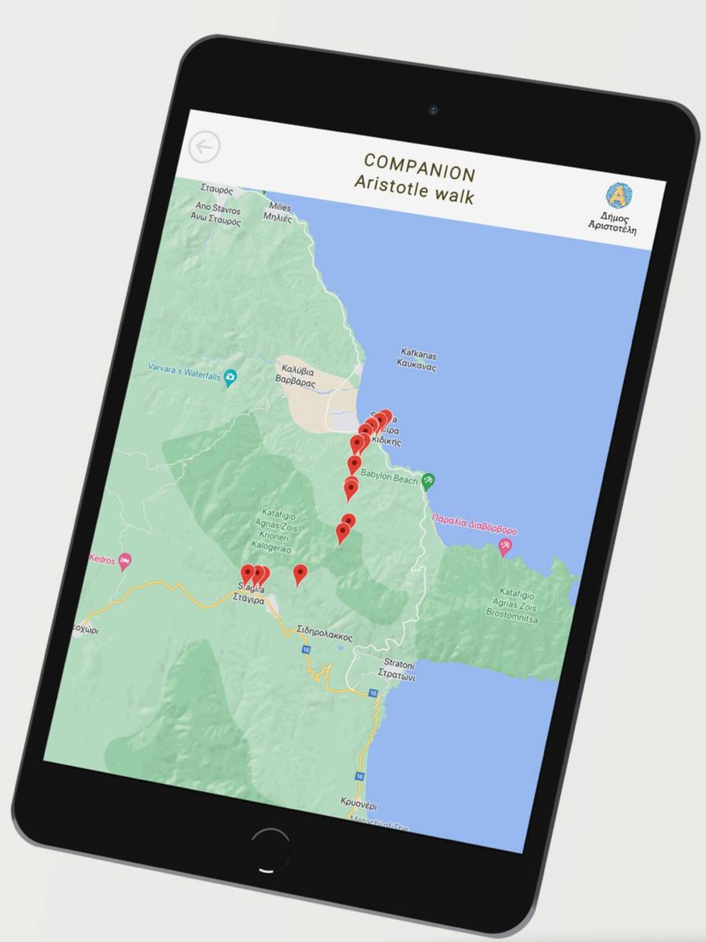 It is a unique mobile app that combines a tour along an exciting route in the area of ancient Stagira to Aristotle's Grove, with educational content in the form of a personal guided tour by Aristotle himself.