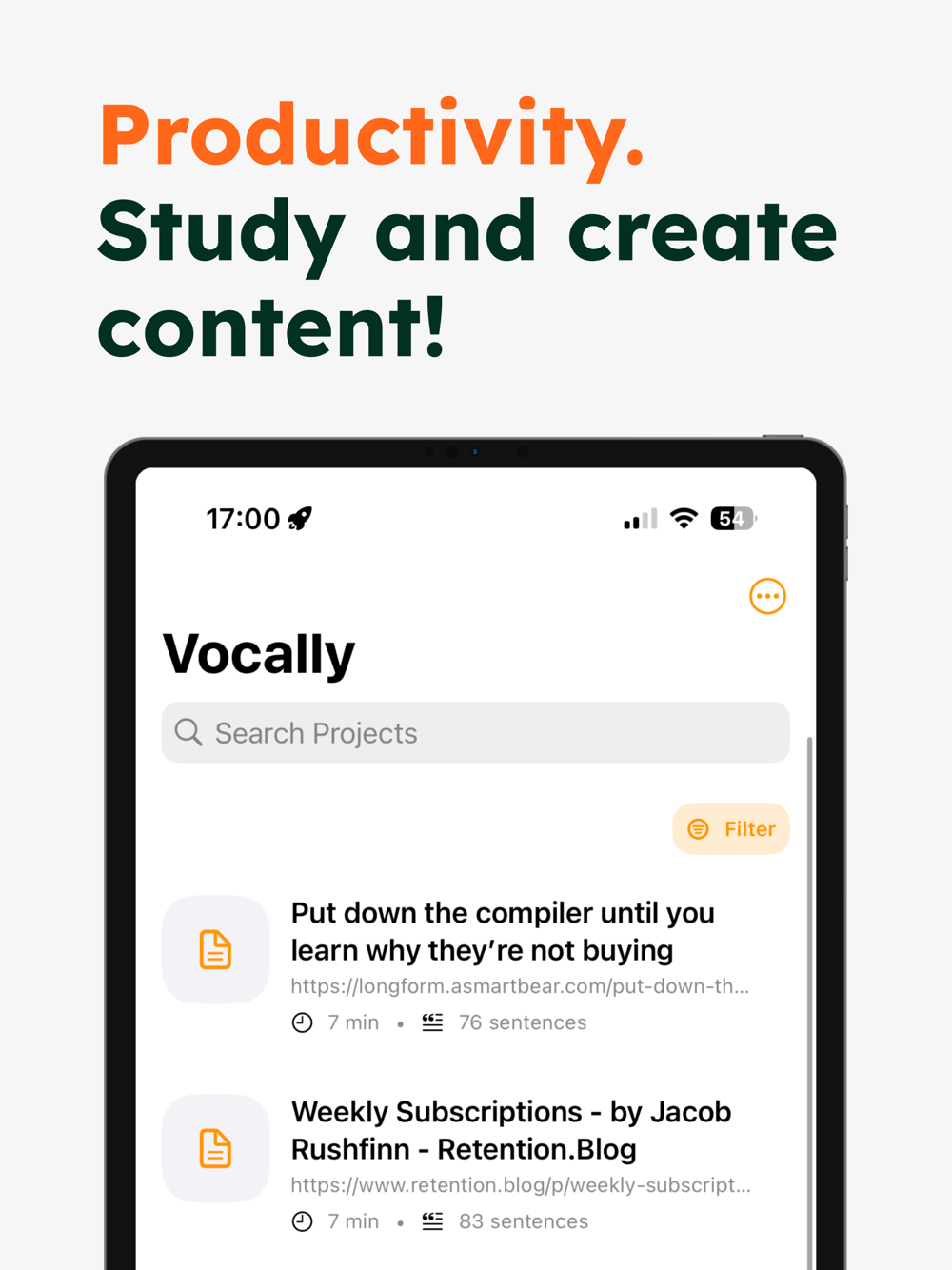 Для чтения статей, учебы, создания контента, подкастов, озвучки видео или упрощения жизни - Vocally ваш идеальный помощник.