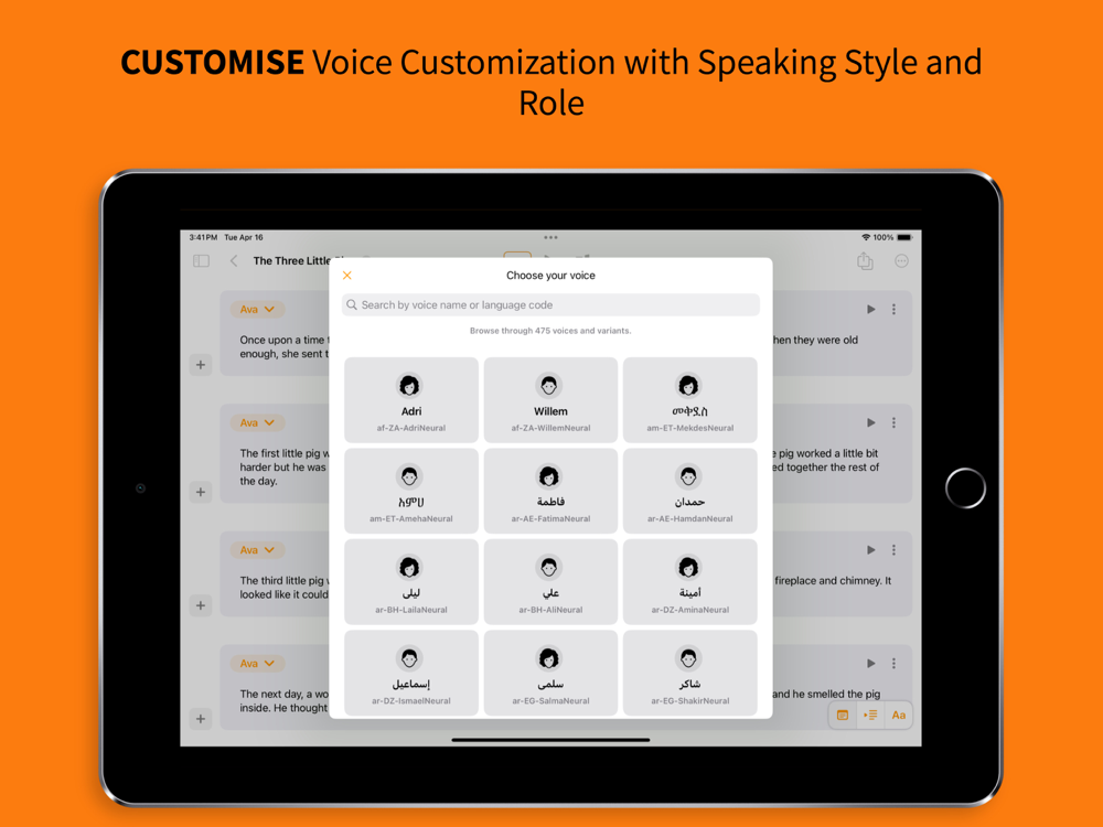 • Выбирайте из 450+ удивительных голосов на 151 языке.