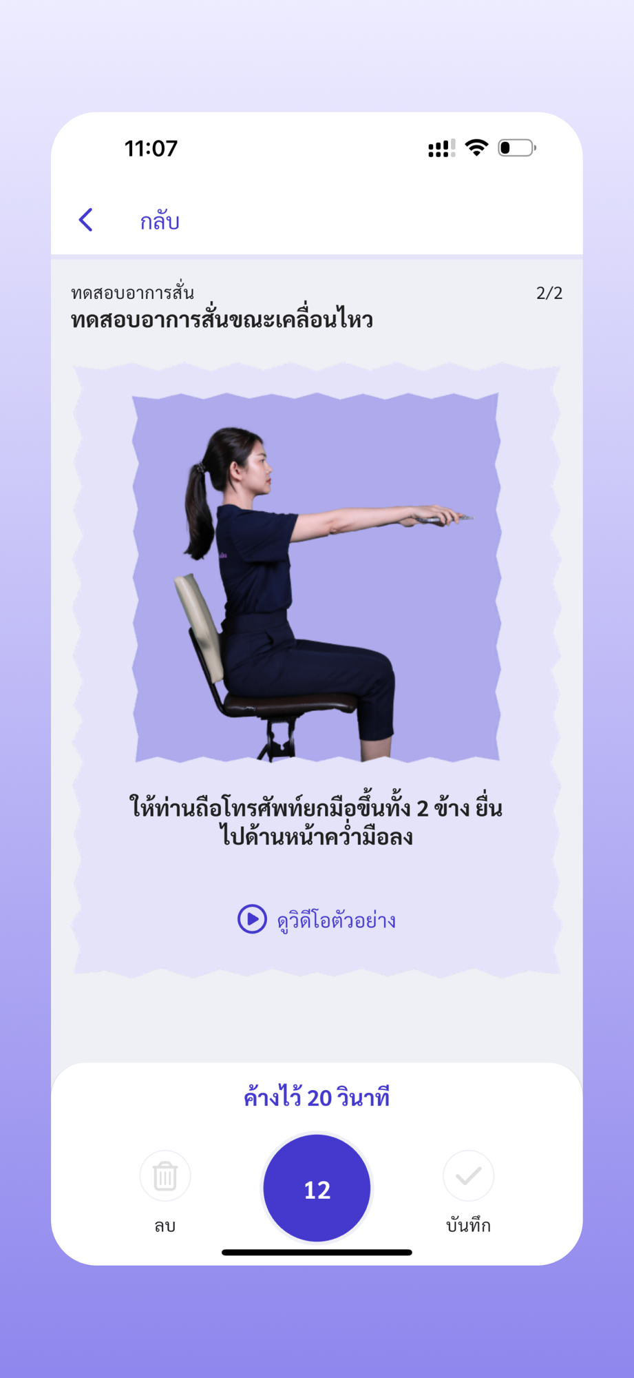 แอพพลิเคชั่นคัดกรองโรคพาร์กินสันเบื้องต้น โดยการใช้การทำนายจากแบบสอบถามและทดสอบสอบต่างๆ เช่น การพูด การเดิน การตอบสนองของนิ้วมือ การทดสอบเหล่านี้วัดค่าจากเซ็นเซอร์โทรศัพท์เคลื่อนที่ของท่าน การคัดกรองเป็นการคัดกรองเบื้องต้นจากข้อมูลทางสถิติเท่านั้น ไม่สามารถใช้วินิจฉัยในทางการแพทย์ได้