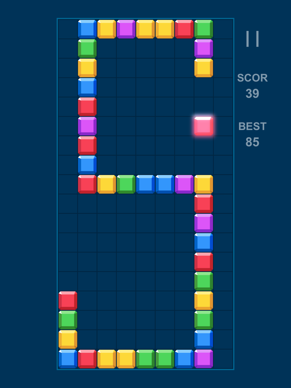 BlockPuzzle: Flick up to flip ɔ|c, Flick down to put, Tap to rotate, Slide to drag.