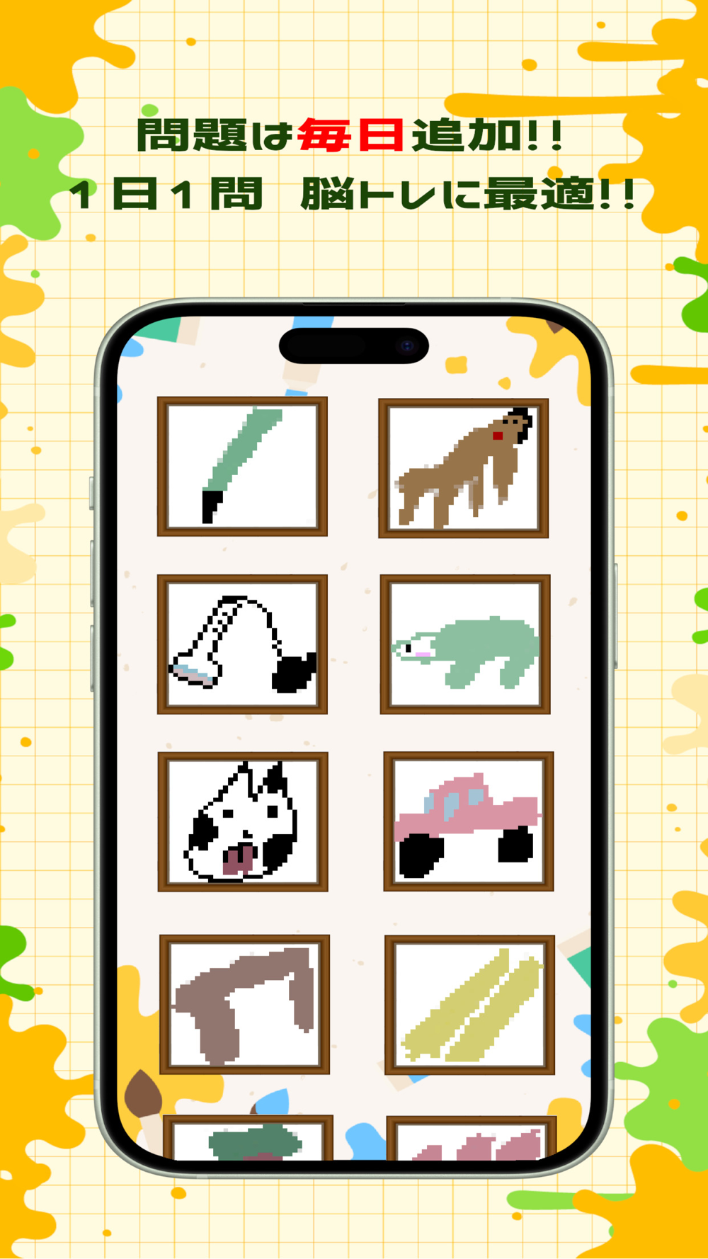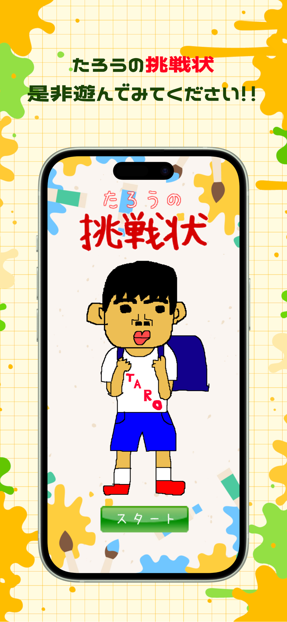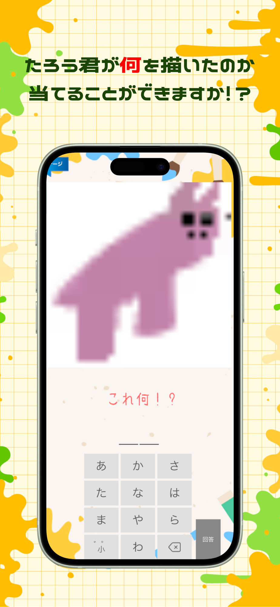 このアプリは、たろう君が描いた絵をほぼそのまま問題として出題する難易度高めのお絵描きロジックです。