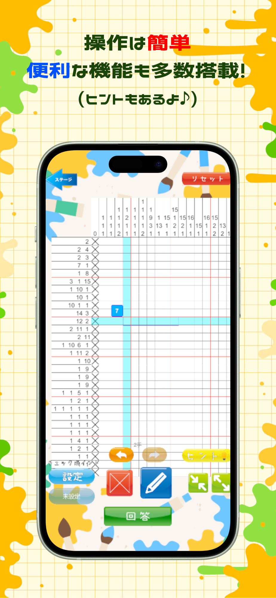 ・イラストロジック完成時に「回答する」ボタンを押すことで正誤判定を行います。