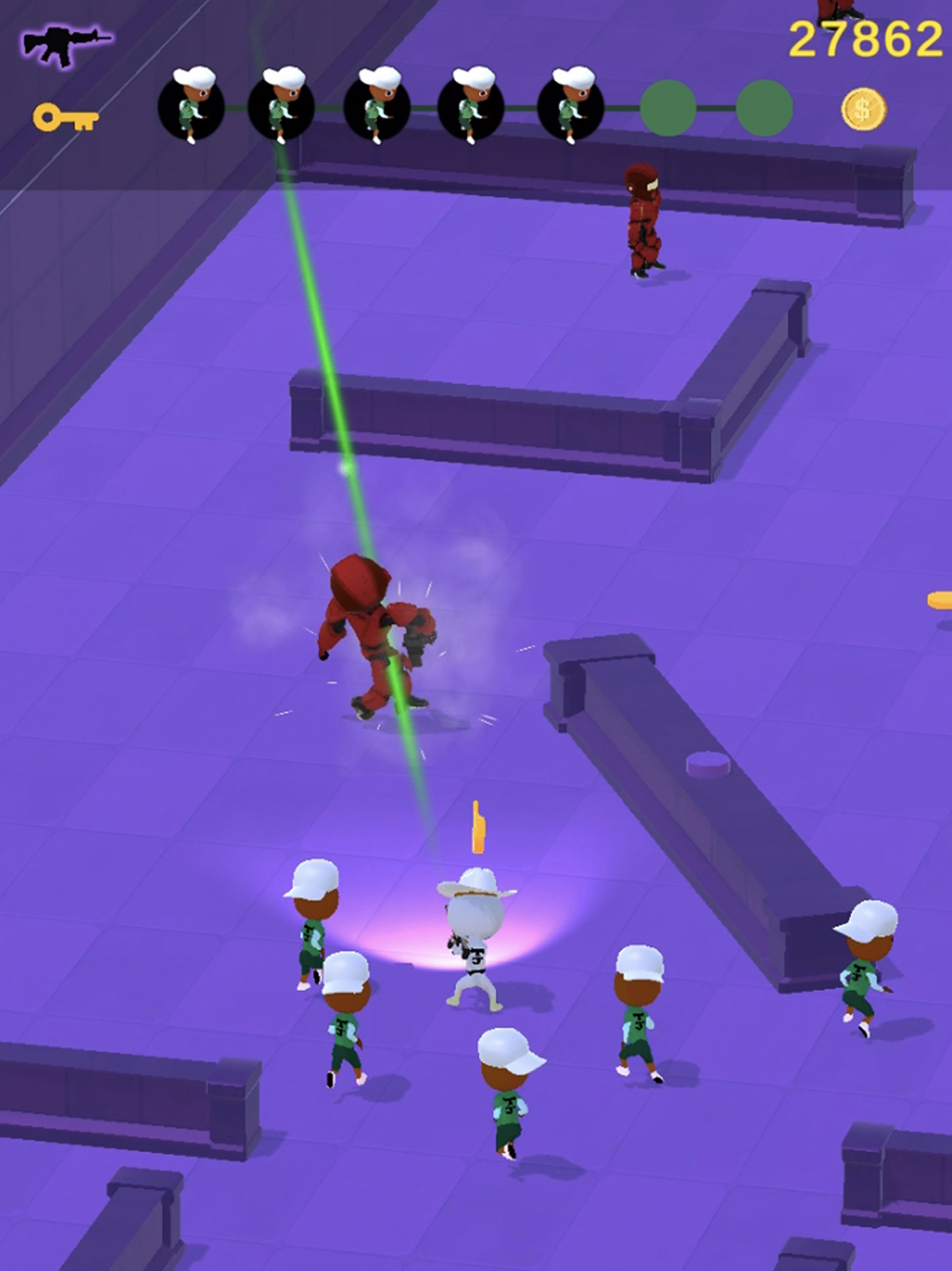 keep moving forward. Swipe to move around and stop to shoot when you have weapons.