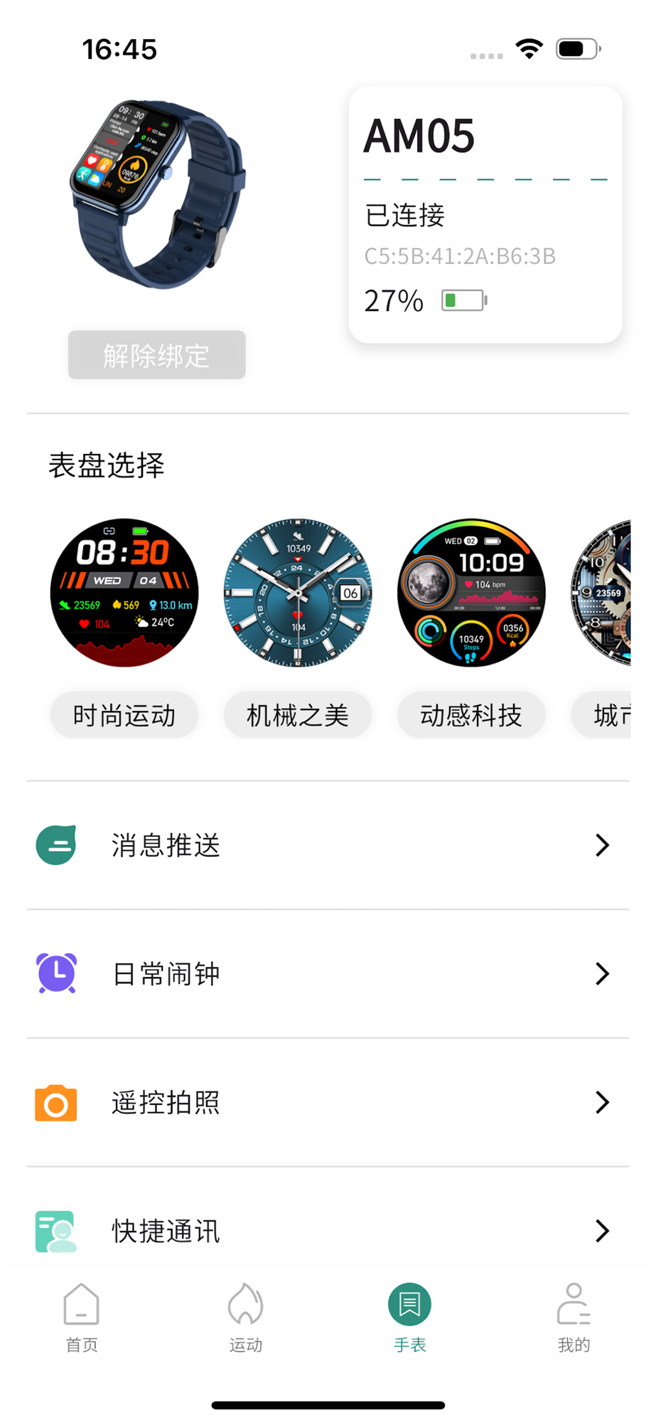 3. You can also personalize your watch through the Do fit application, including alarm clock, remote camera, screen time, language settings, backlight settings, do not disturb mode, and sedentary reminders;