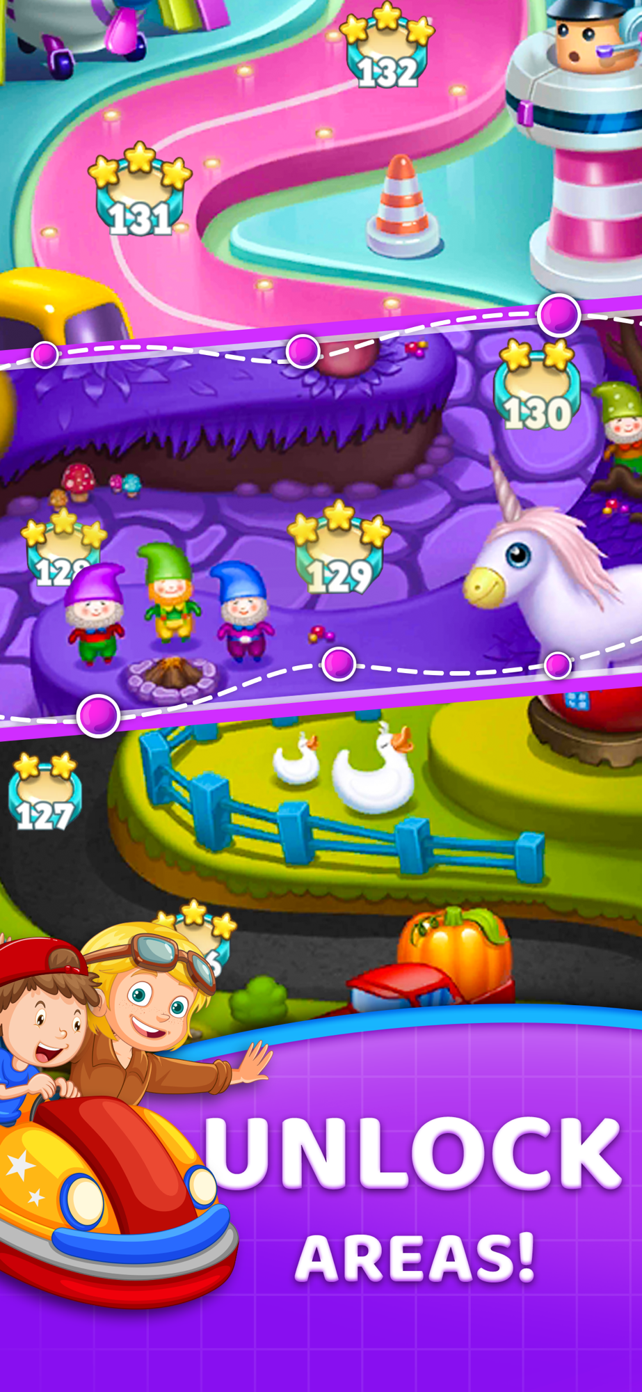 ? Unique and exciting match-3 levels: fun boards featuring boosters and combos!