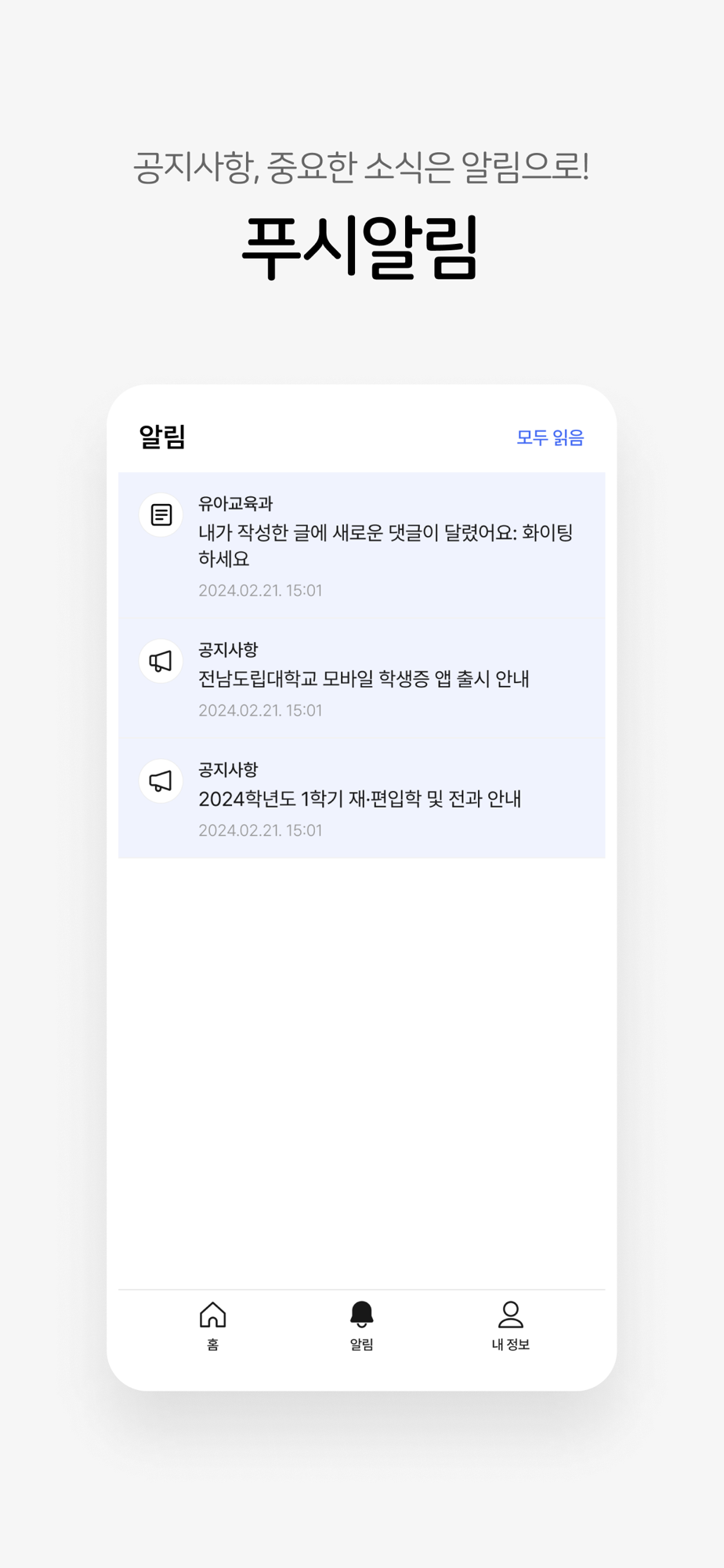 공지사항, 중요한 소식은 알림으로 알려드려요