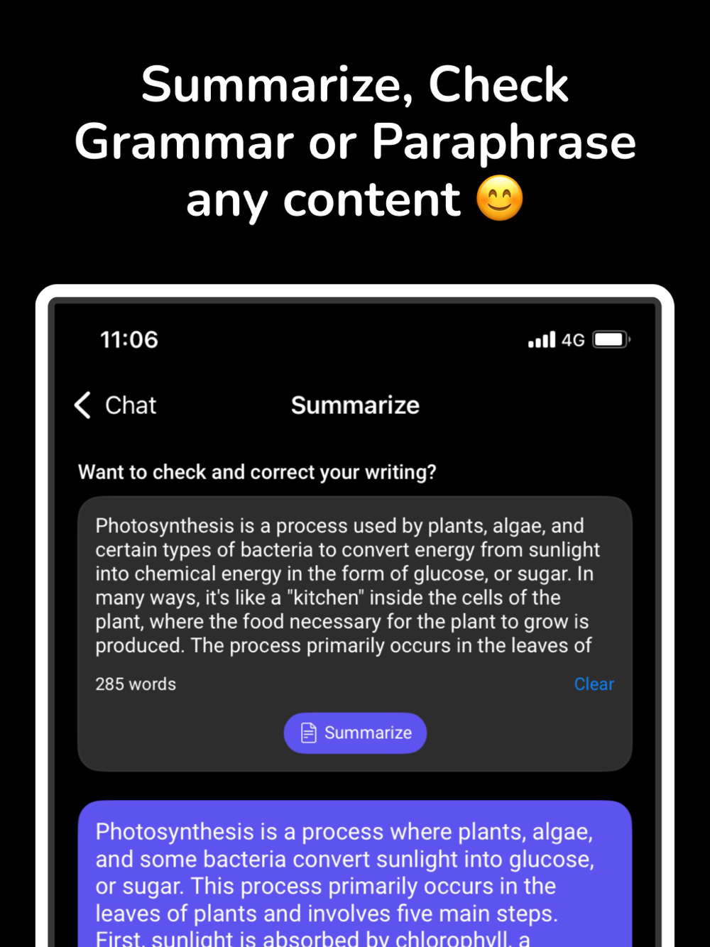 3) Summarize, Paraphrase and check Grammar of the AI response