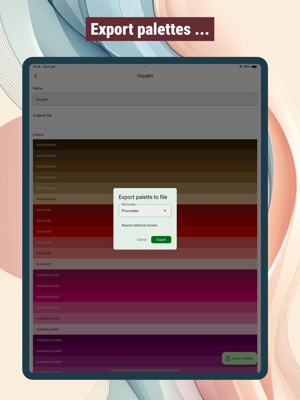 - Offline Functionality: Access and manage your palettes anytime, anywhere - no internet needed.