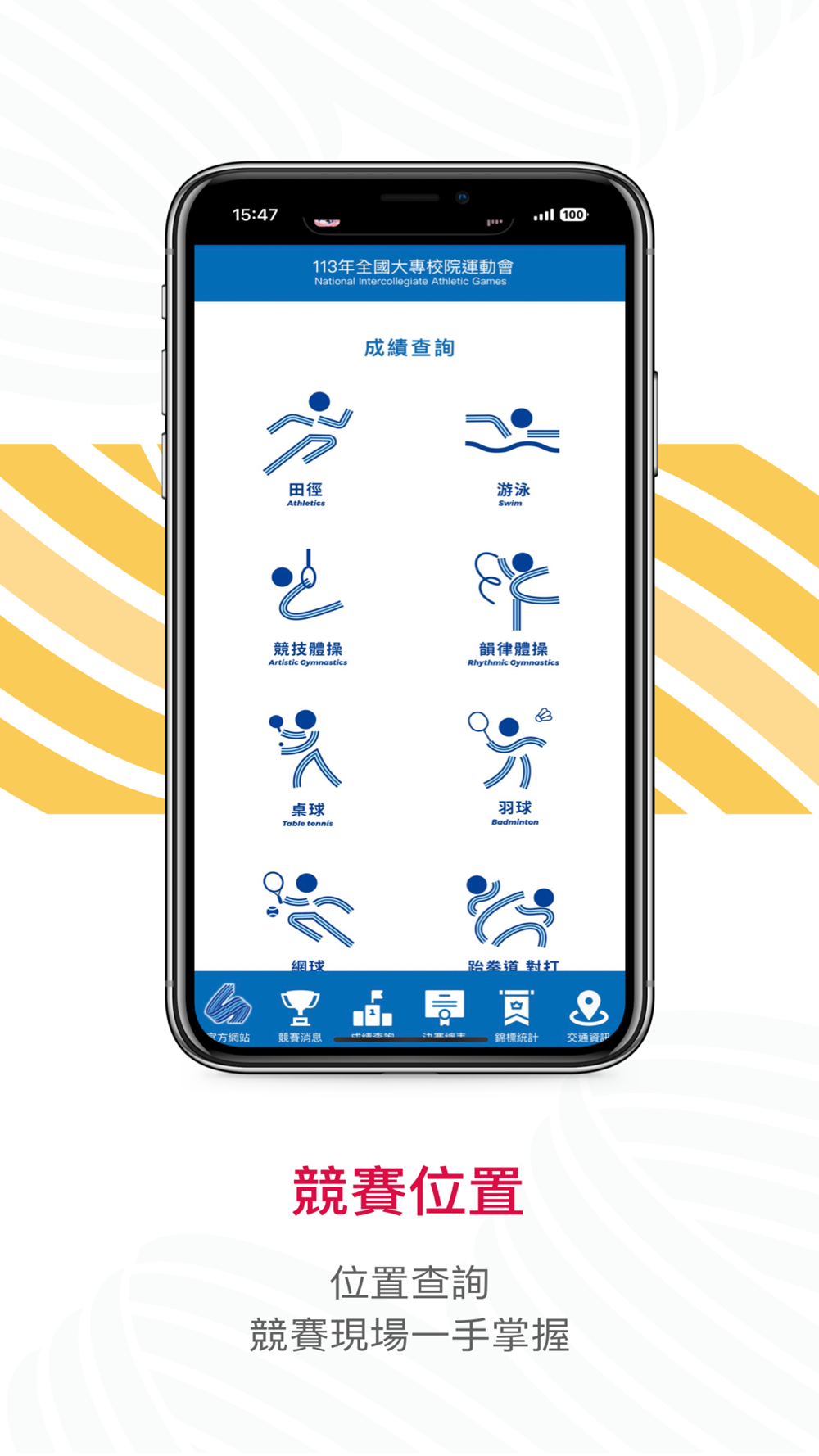 各類即時成績推播與消息也將於應用中即時更新!