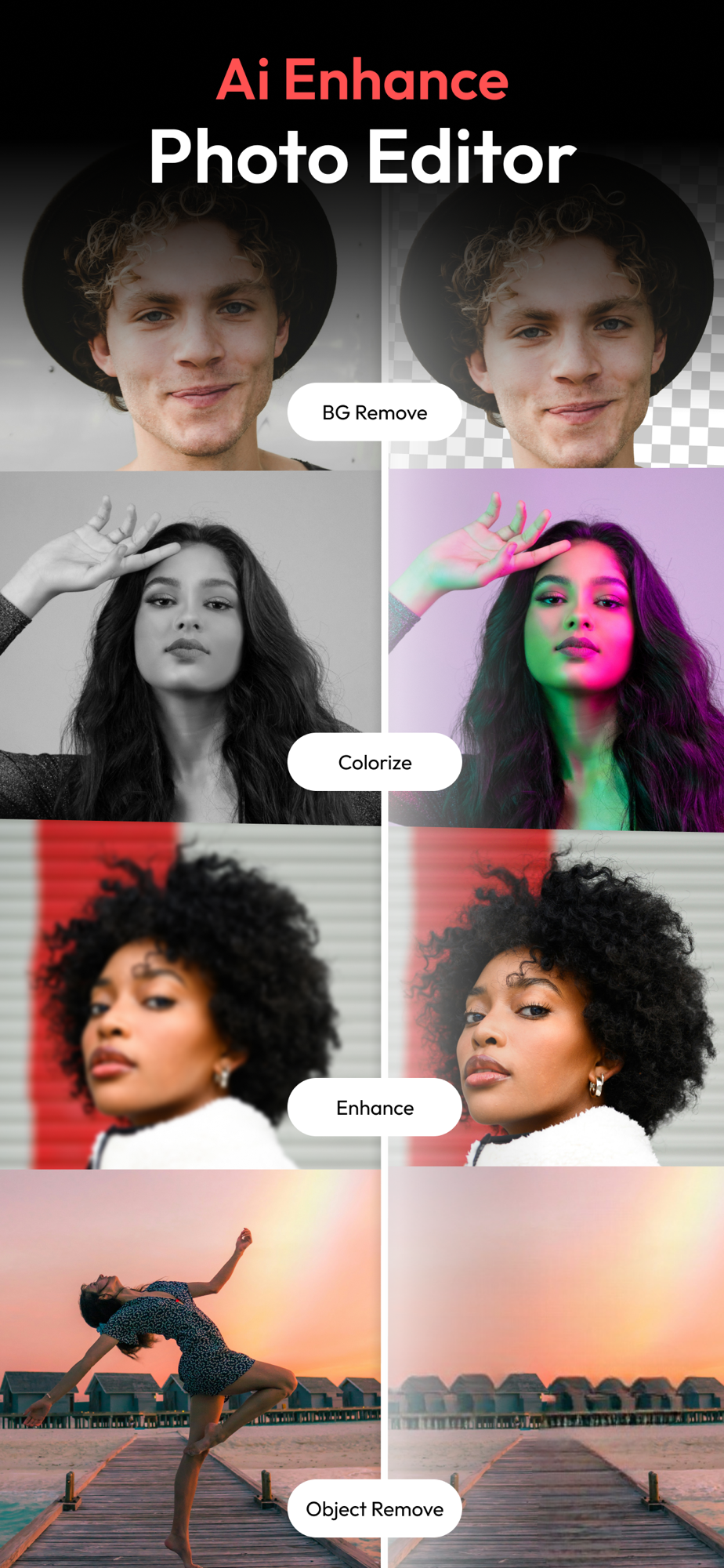 Experience the ultimate in photo enhancement with our AI Enhance Photo Editor tool. Say goodbye to blurry and damaged portraits as you effortlessly transform mismatched photos into clear, stunning images. Our user-friendly app simplifies the editing process, allowing you to achieve professional-quality results without the need for multiple editing tools. Simply open the app, select or capture your desired image, click "allow to generate," and see the magic of AI technology enhancing and adorning your photo. Compare the before and after with ease, then save your enhanced masterpiece with just a few clicks. Say hello to clearer, more adorable images with our AI-enhanced Photo Editor App.