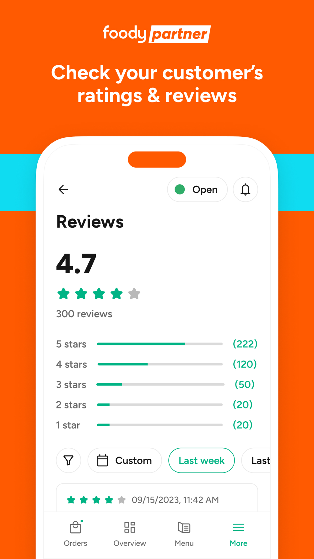 Say goodbye to the hassle of managing your business from your desktop. With foody partner, you can take your business with you wherever you go!
