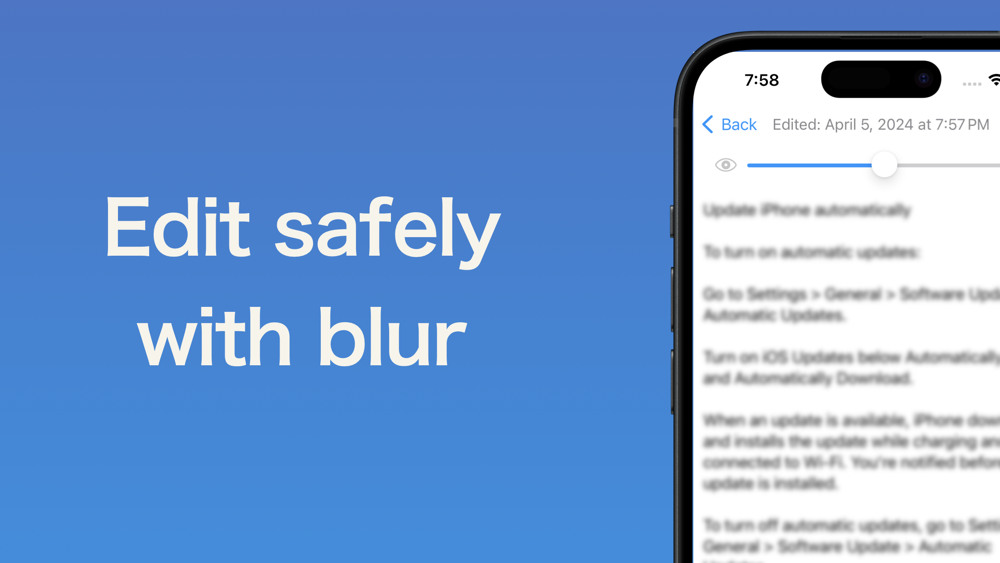 This is a note-taking app with password lock feature. While creating notes, you can blur them to make them less visible to others. Passwords can be complex, combining letters and numbers. Additionally, it supports biometric authentication such as Face ID or Touch ID for easy unlocking.