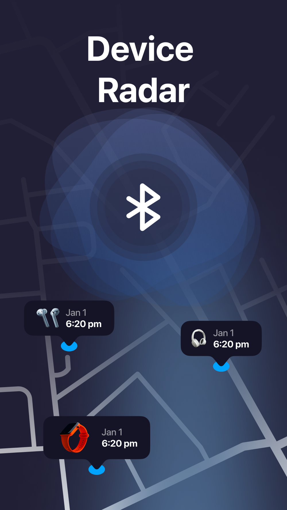 Discover nearby AirPods, headphones, and other Bluetooth devices effortlessly with our user-friendly app. Simply add your devices, assign custom names, upload photos, and securely store them all in one convenient location. Stay organized by tracking your searches and findings with our built-in "History" feature. Try our app today and potentially save money by avoiding unnecessary device purchases!
