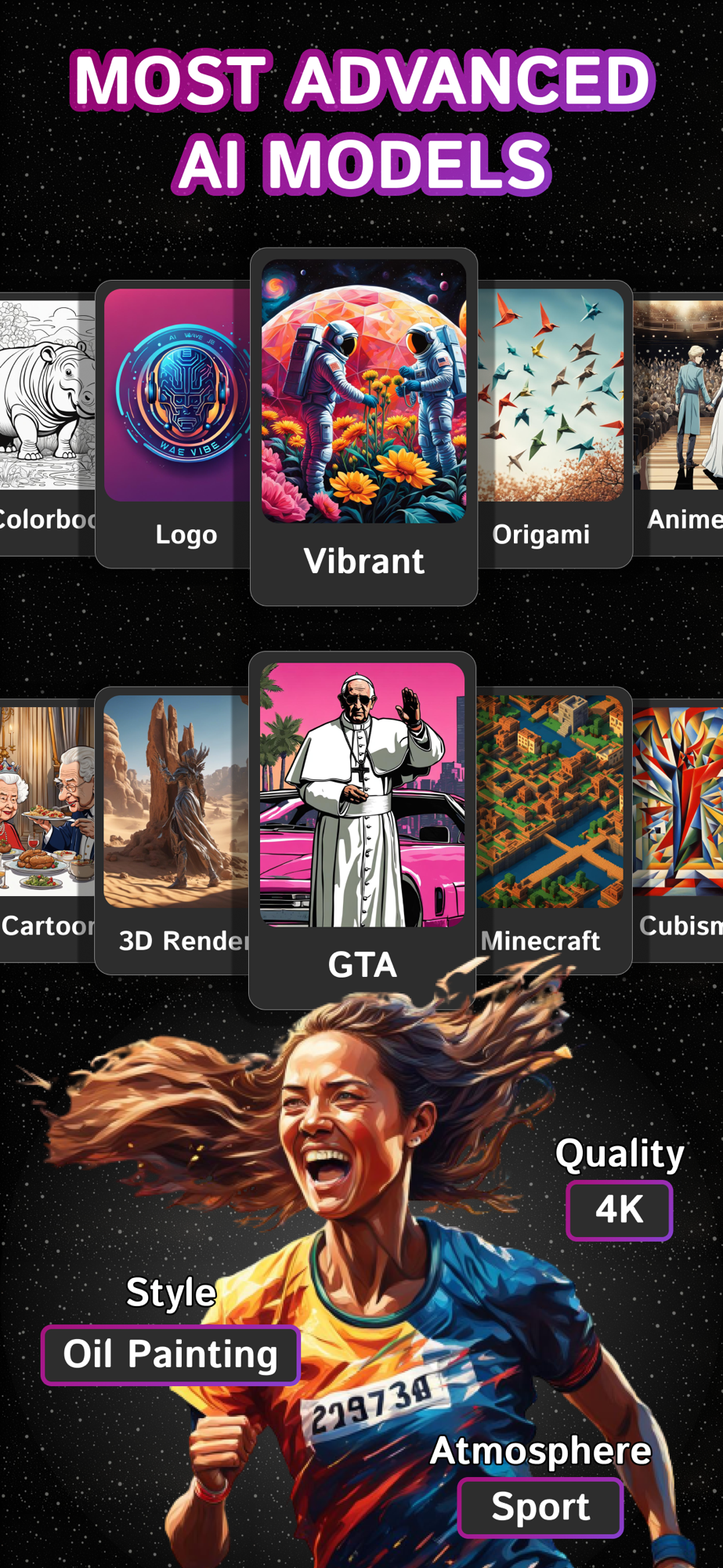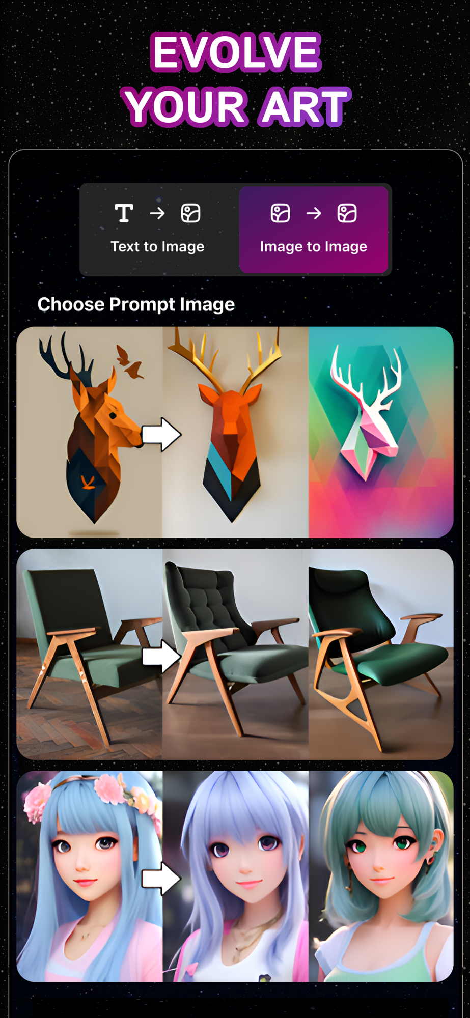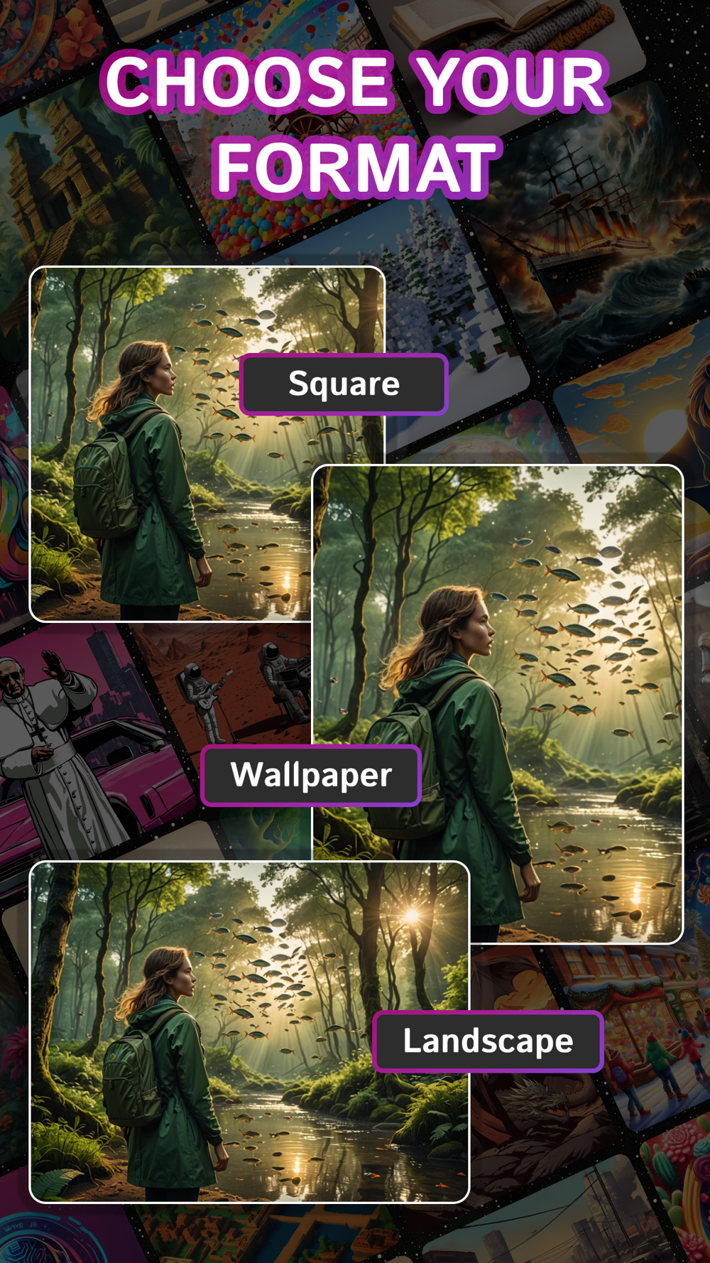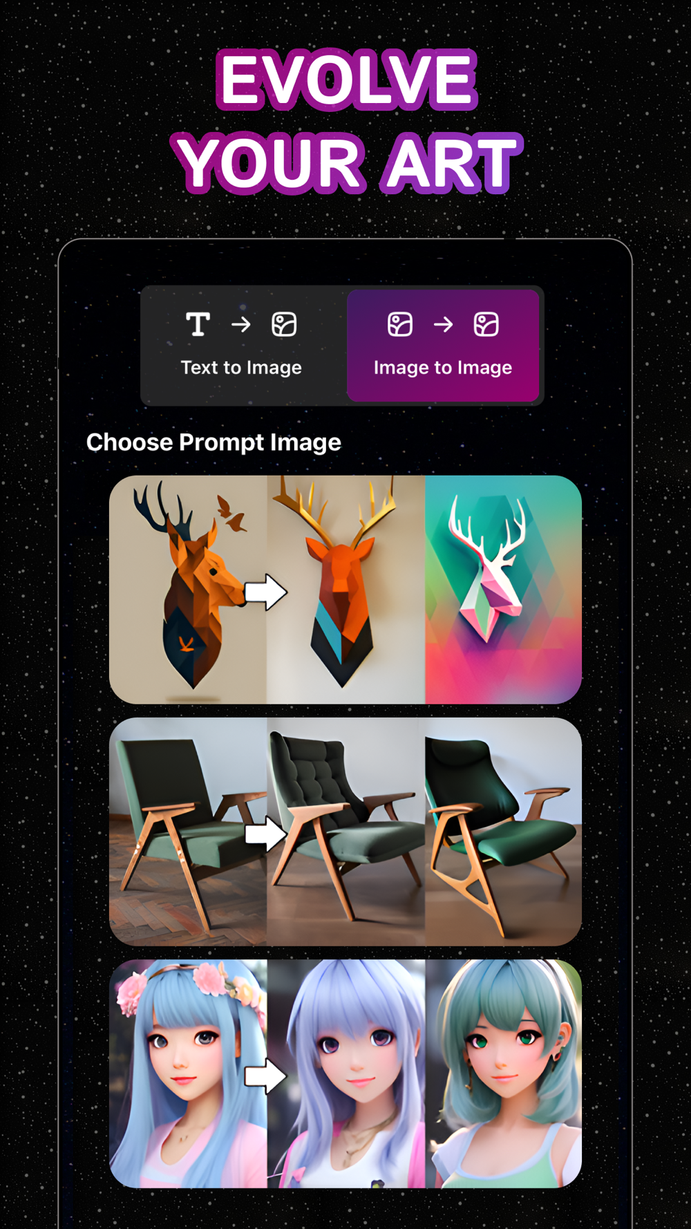 Whether you prefer classic elegance, futuristic vibes, or vibrant pop art, ART·AI offers many options to enhance and customize your creations.