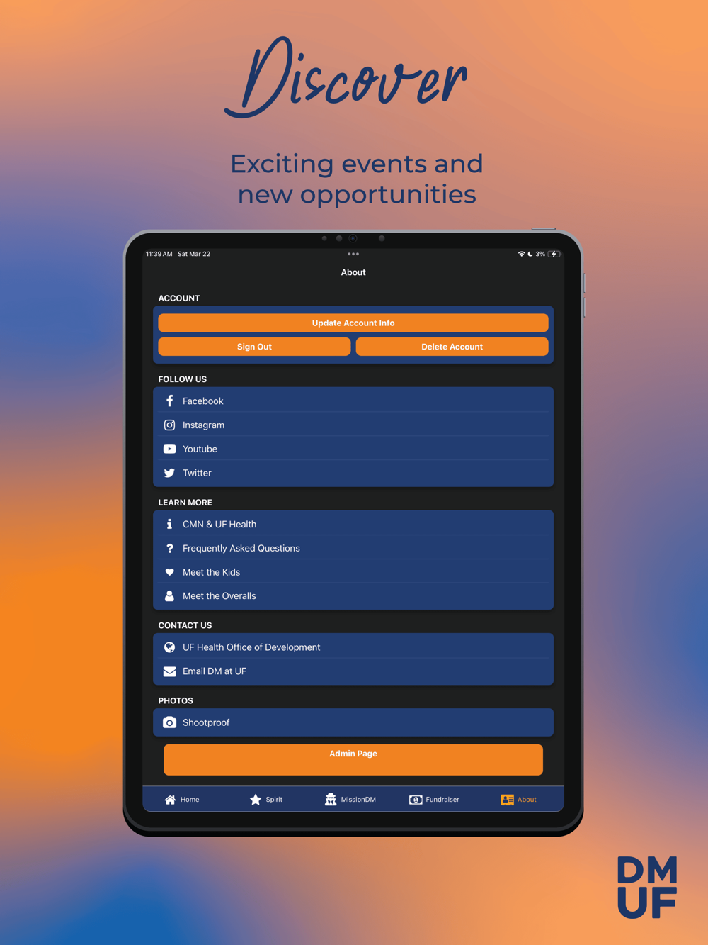 Students, Faculty, Miracle Families, and Alumni can now stay up to date on everything DM at UF-related. The mobile app features: