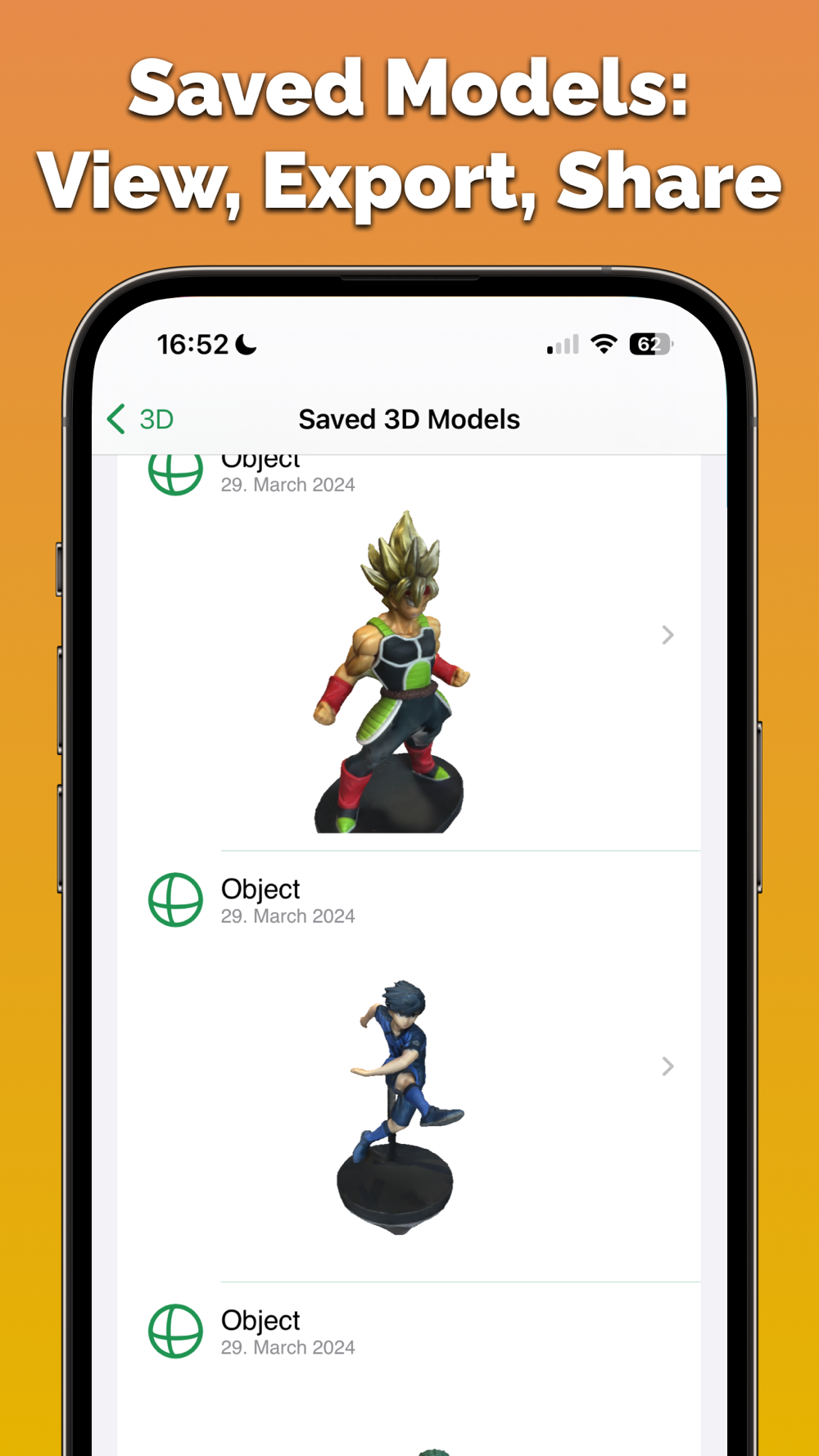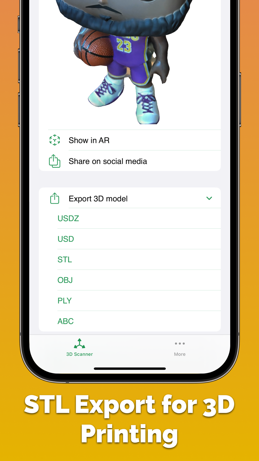 – Exporting? Easy. Choose from formats like USDZ, STL, PLY, ABC or OBJ, ready to use in other projects and 3D printing.