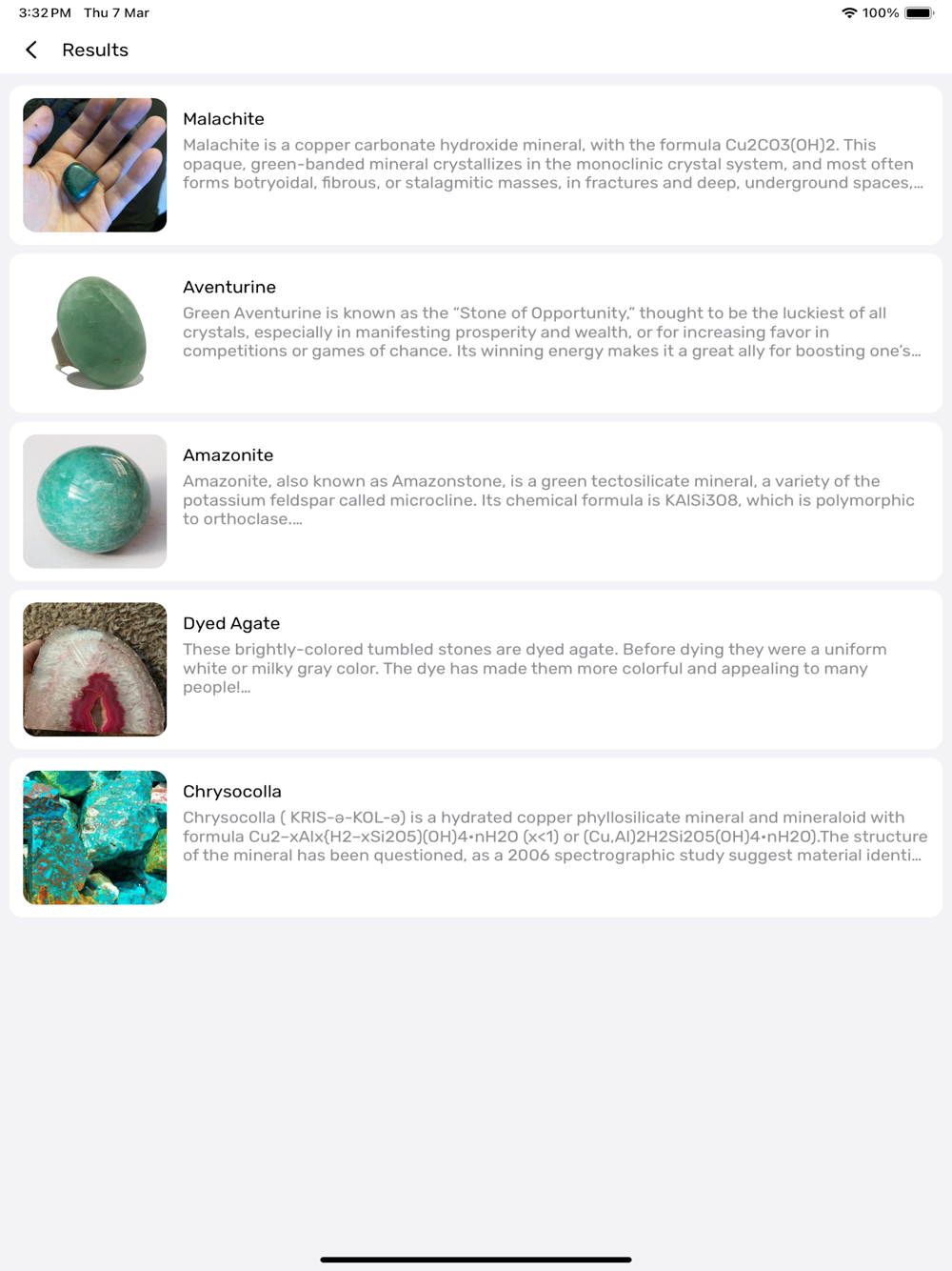 Take a photo of any crystals or gemstones and get an instant accurate identification. This rock scanner app contains over 6000+ types of rocks and helps anyone who wants to recognize, examine and explore the characteristics of stones in seconds.