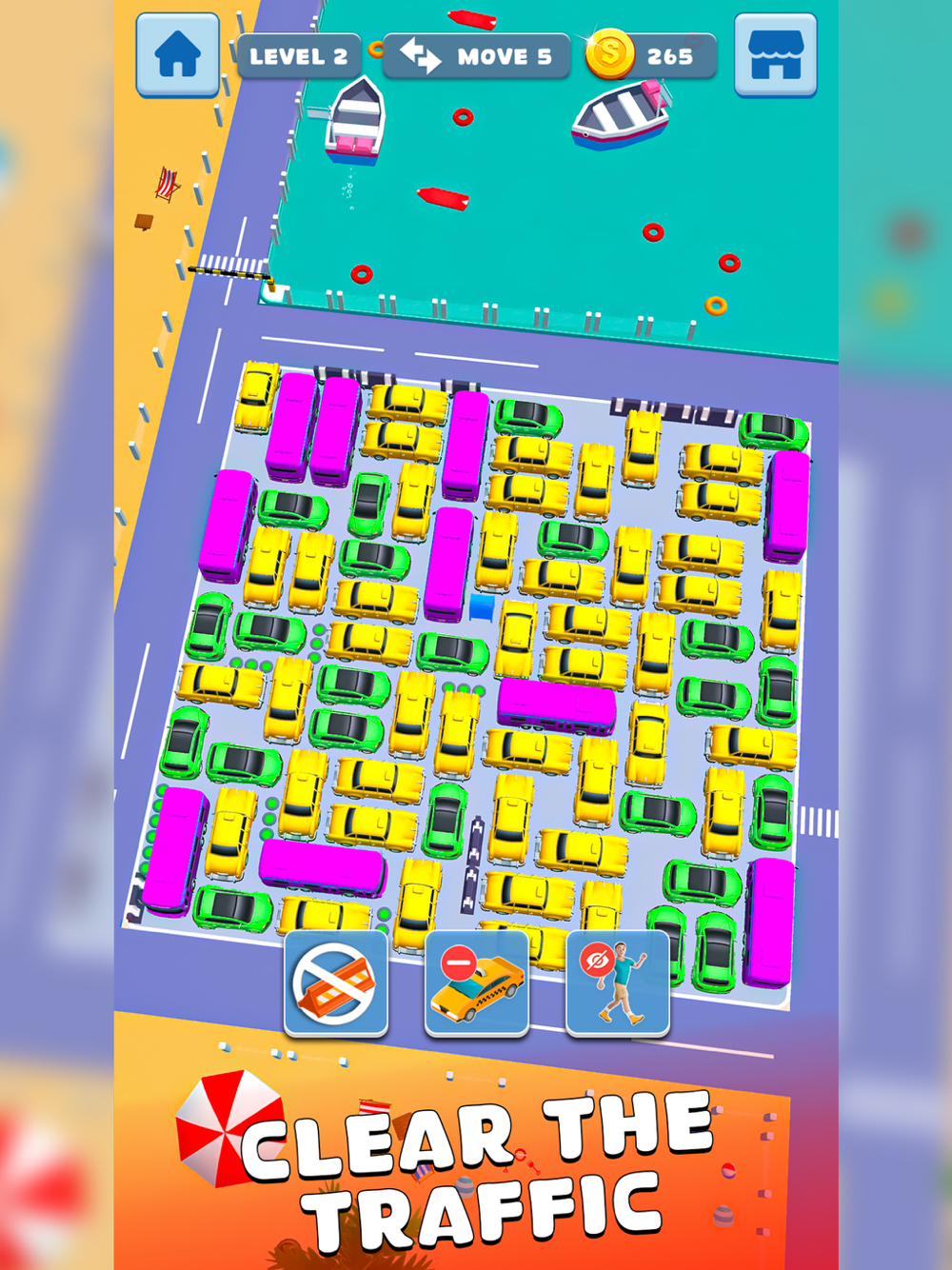 Easy to Play, Hard to Master: Slide and move cars with simple controls.