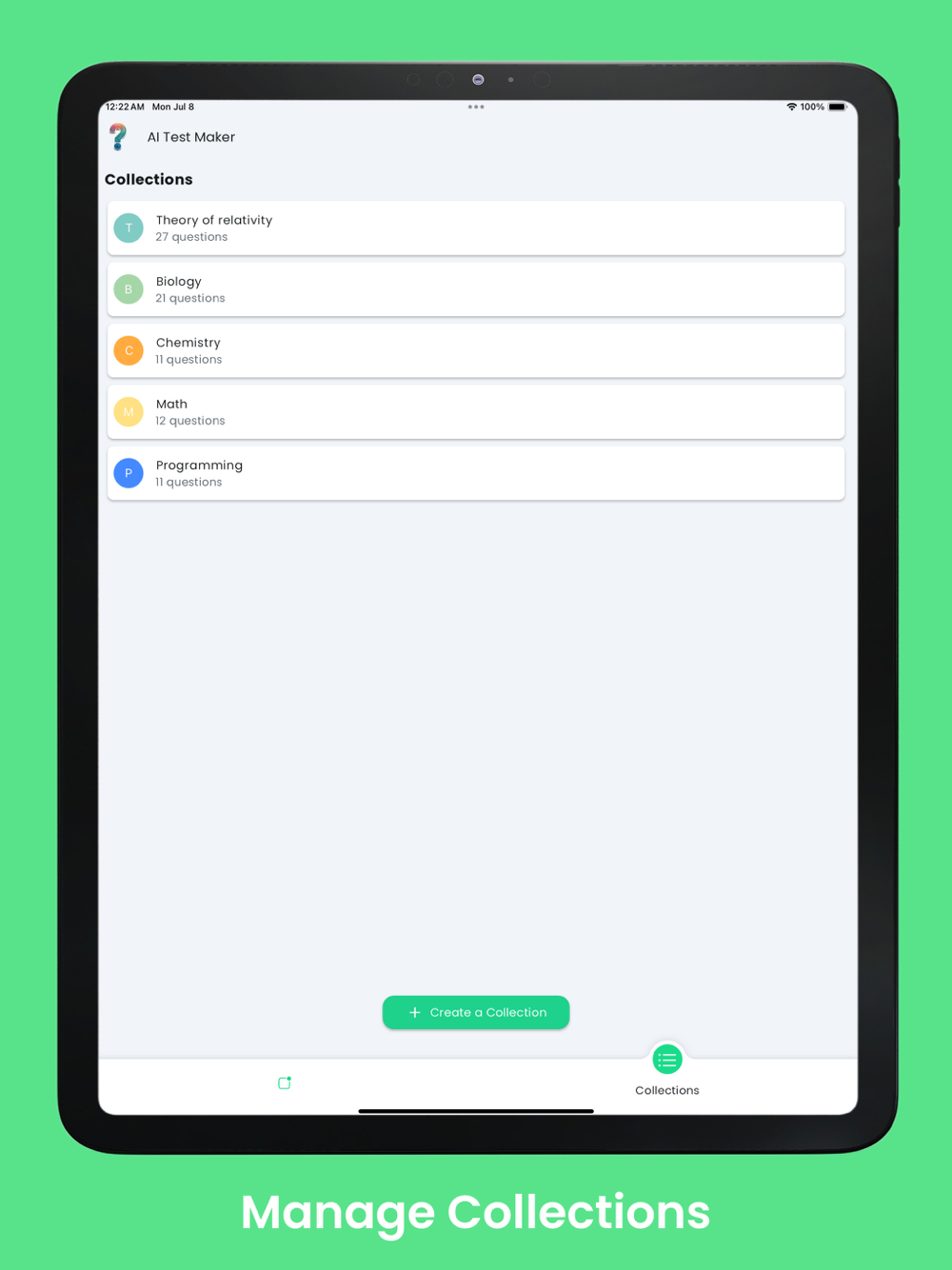 Create a Collection: Save AI-generated or manual questions to a personal bank.