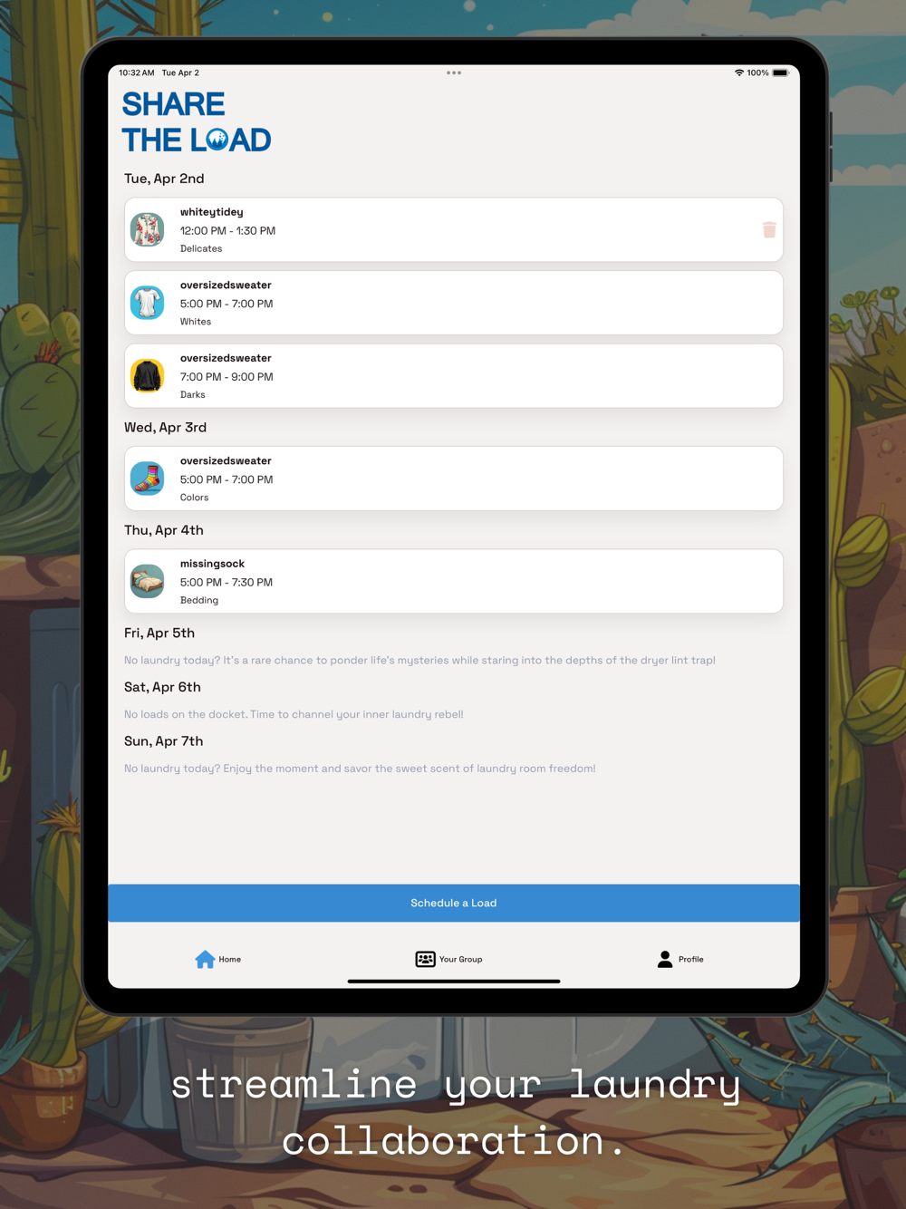 Welcome to Share the Load, the ultimate laundry scheduler app designed to streamline and optimize your laundry room experience! Say goodbye to the chaos of coordinating laundry schedules with your roommates, family, or housemates. With Share the Load, you can effortlessly manage and organize your laundry routines for maximum efficiency.